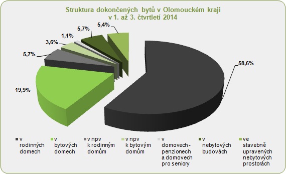 Graf - Struktura dokončených bytů v Olomouckém kraji v 1. až 3. čtvrtletí 2014