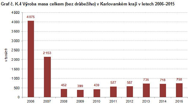 Graf K.4 Výroba masa celkem (bez drůbežího) v Karlovarském kraji v letech 2006–2015