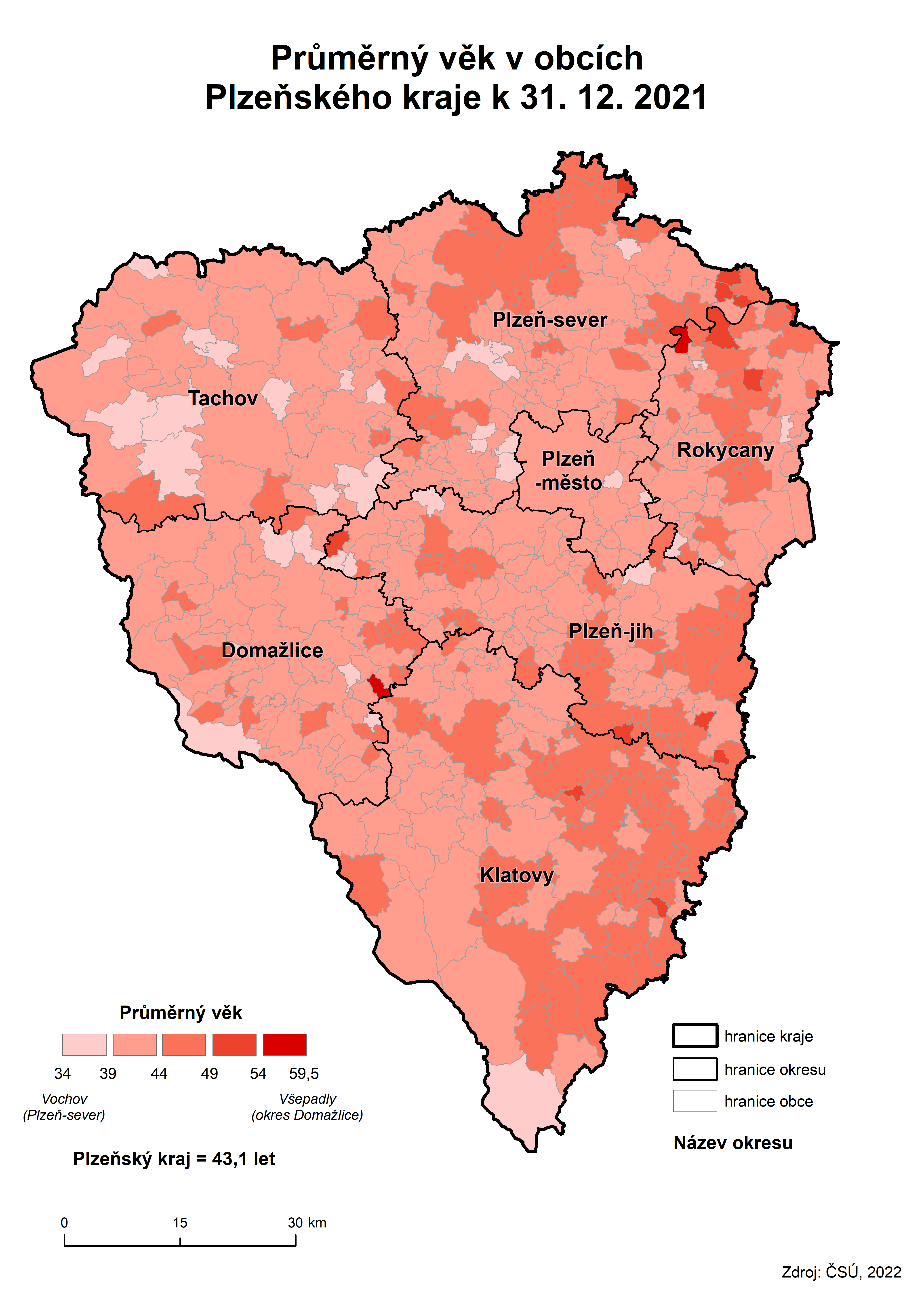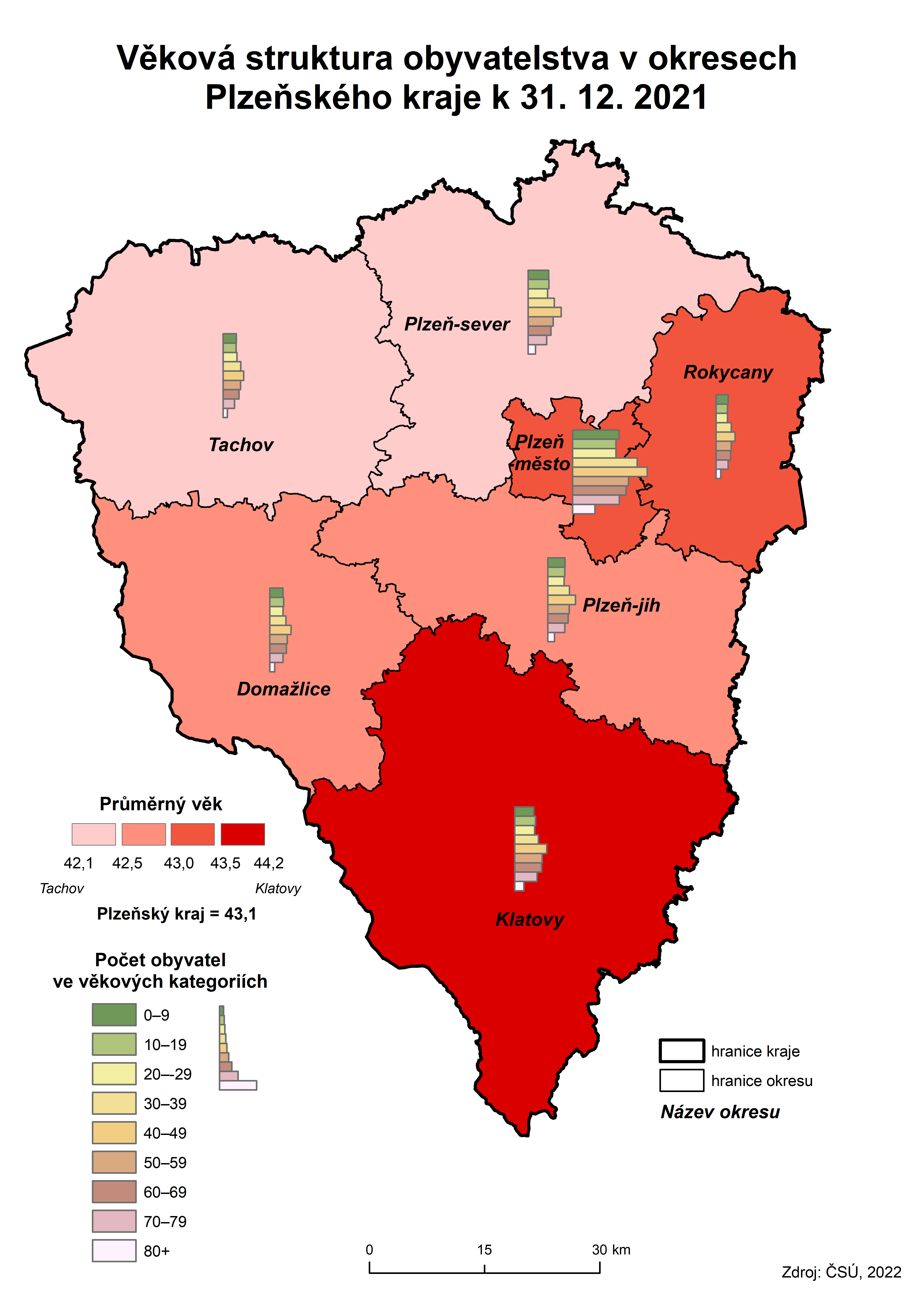 Věková struktura obyvatelstva v okresech Plzeňského kraje