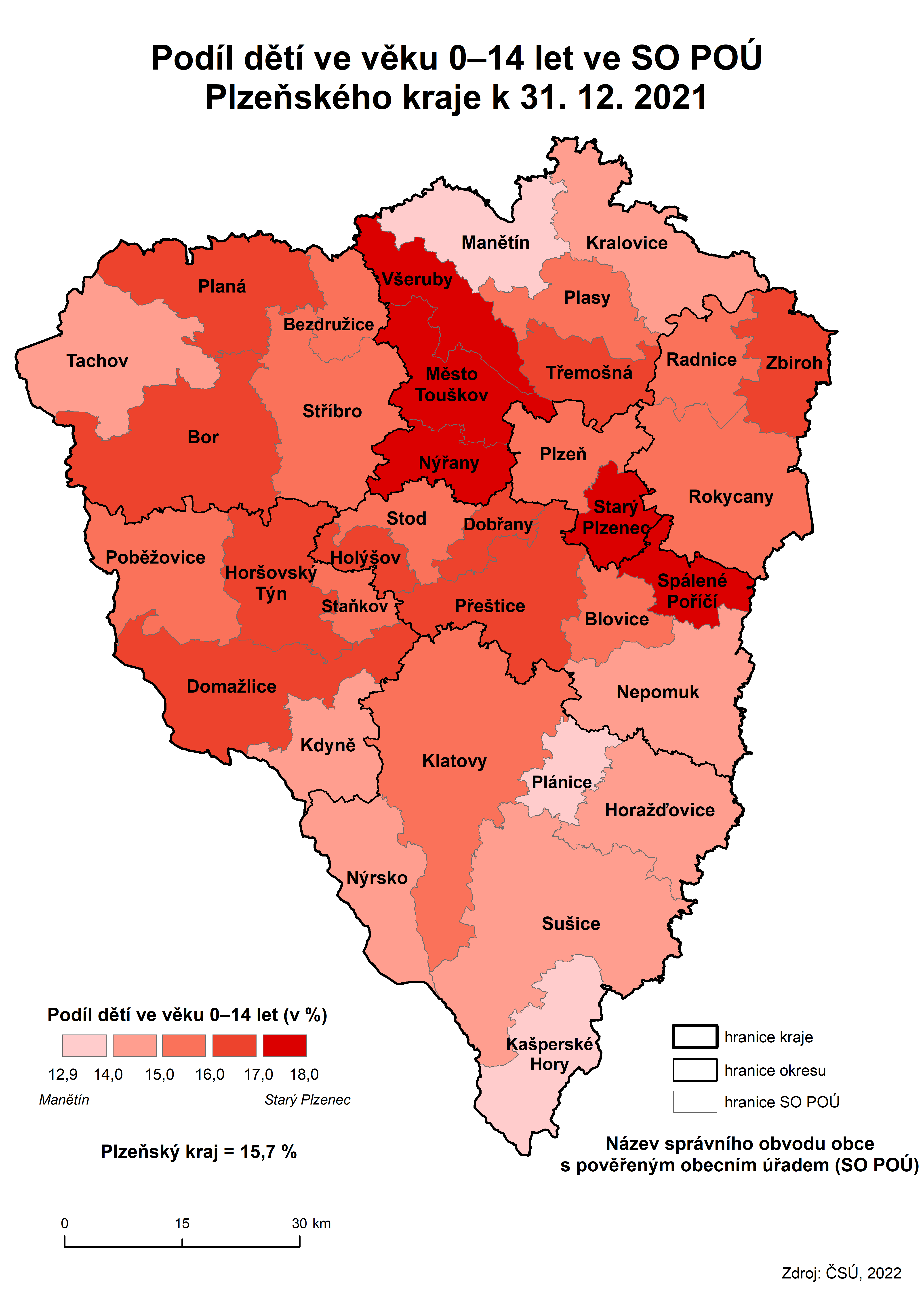 Podíl dětí ve věku 0–14 let ve SO POÚ Plzeňského kraje