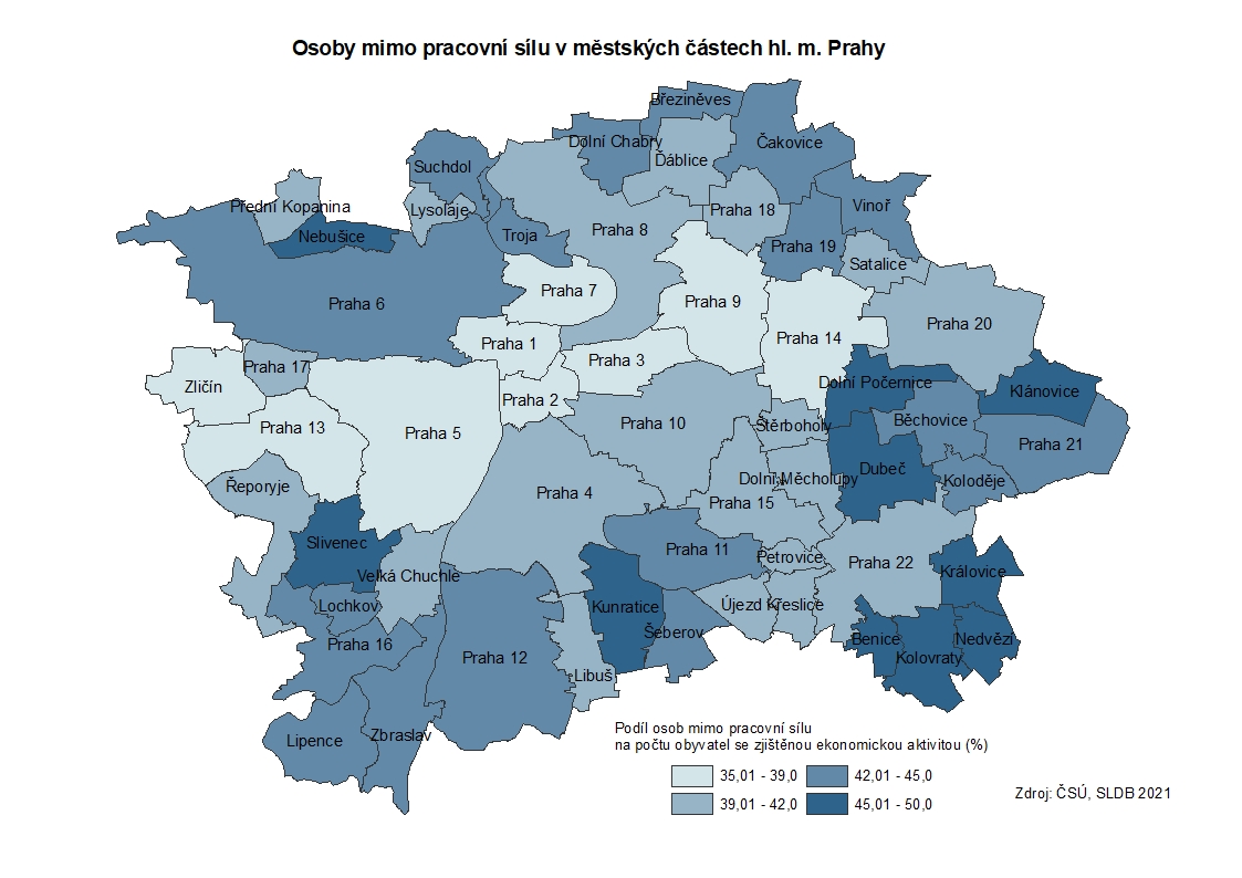 Osoby mimo pracovní sílu v městských částech hl. m. Prahy