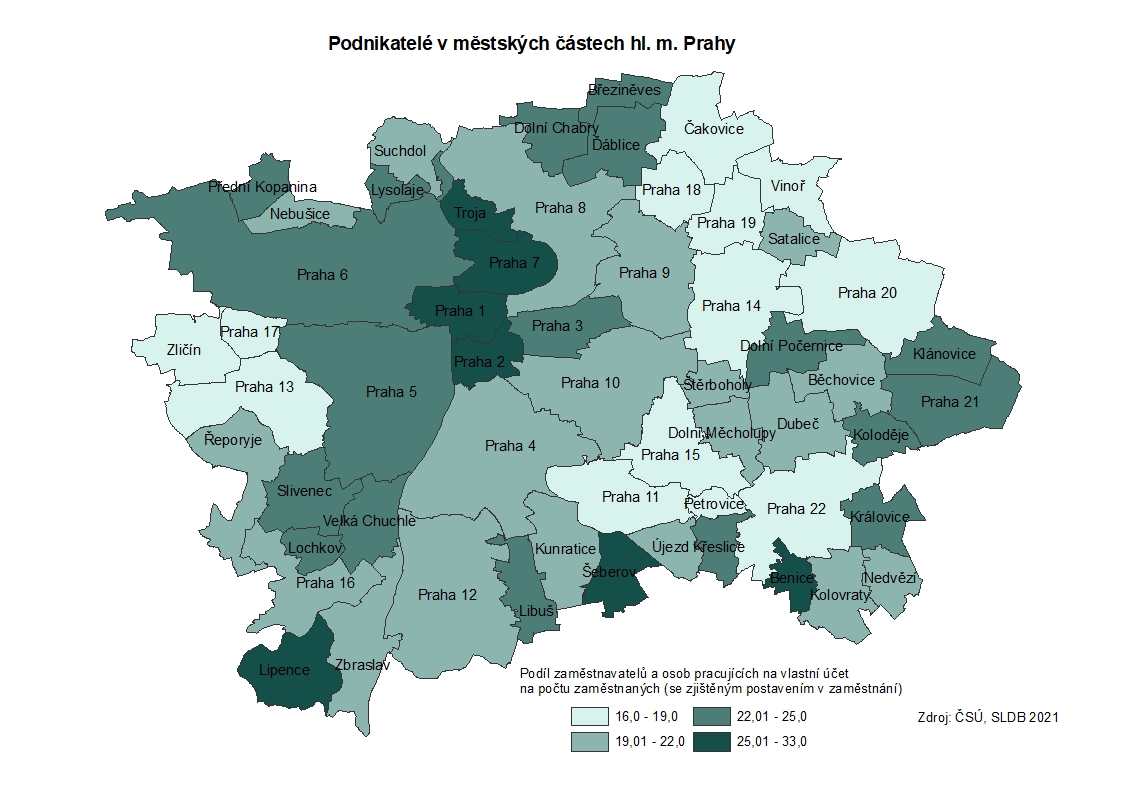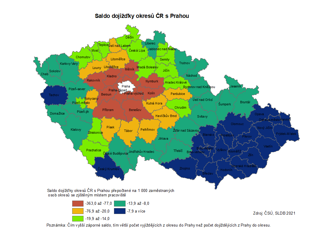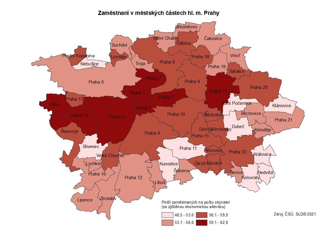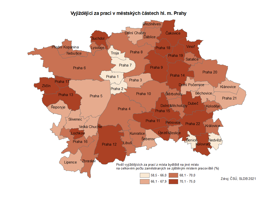 Vyjíždějící za prací v městských částech hl. m. Prahy