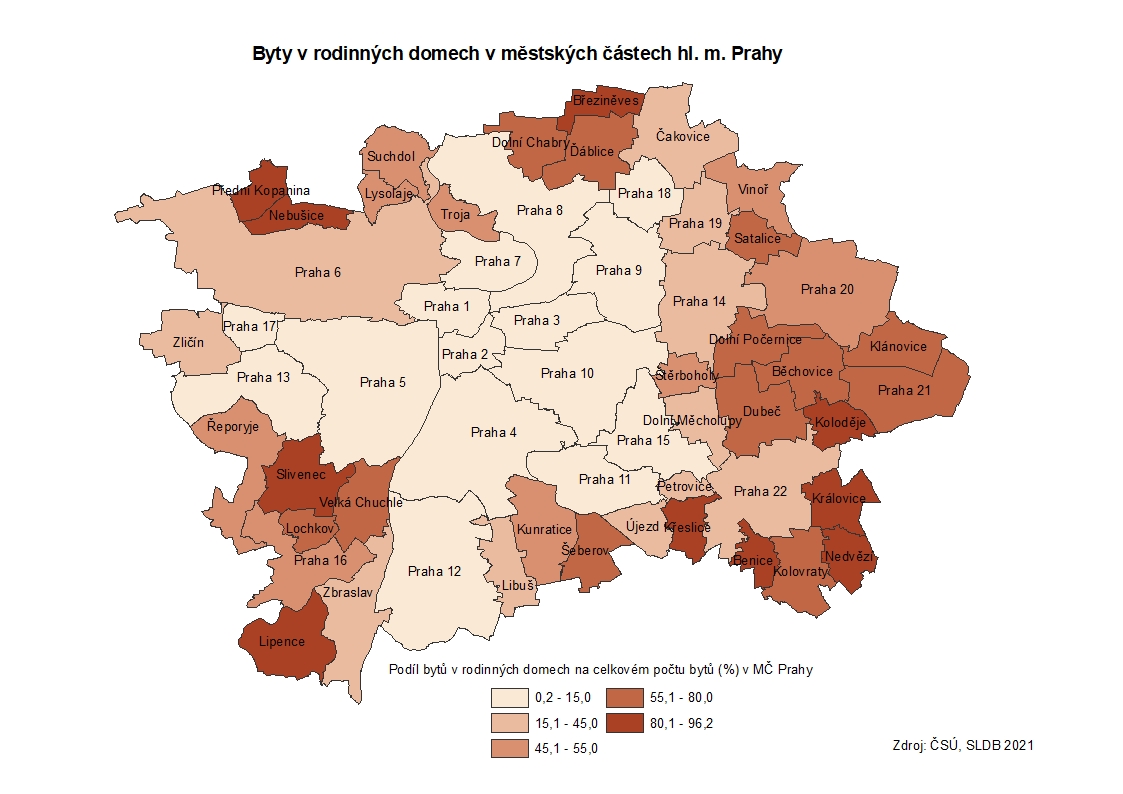 Byty v rodinných domech v městských částech hl. m. Prahy