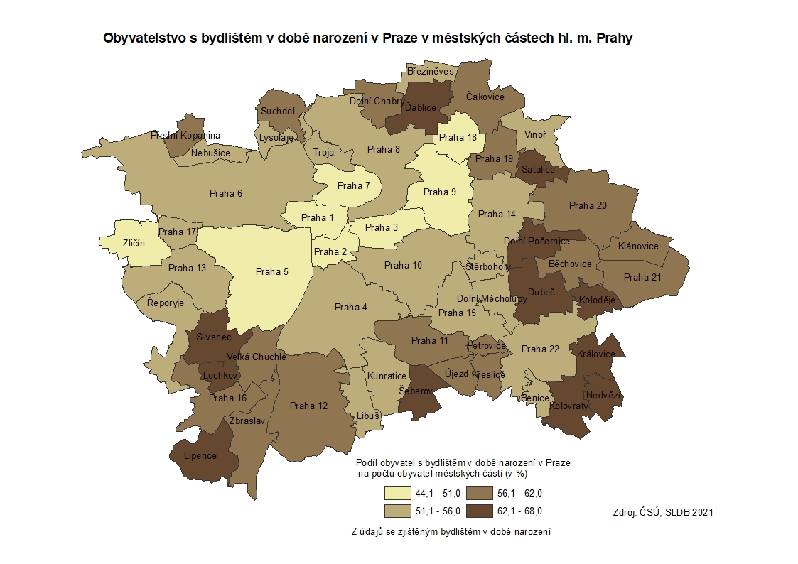 Obyvatelstvo s bydlištěm v době narození v Praze v městských částech hl. m. Prahy