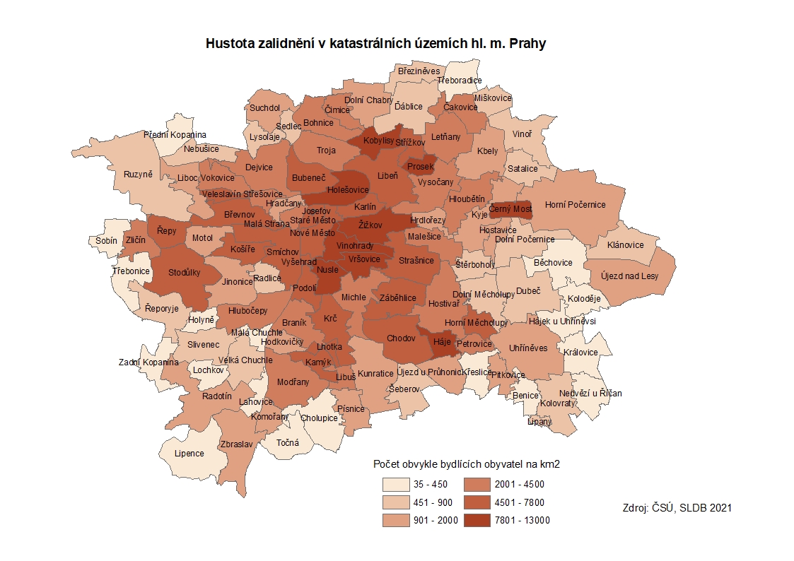 Hustota zalidnění v katastrálních územích hl .m. Prahy