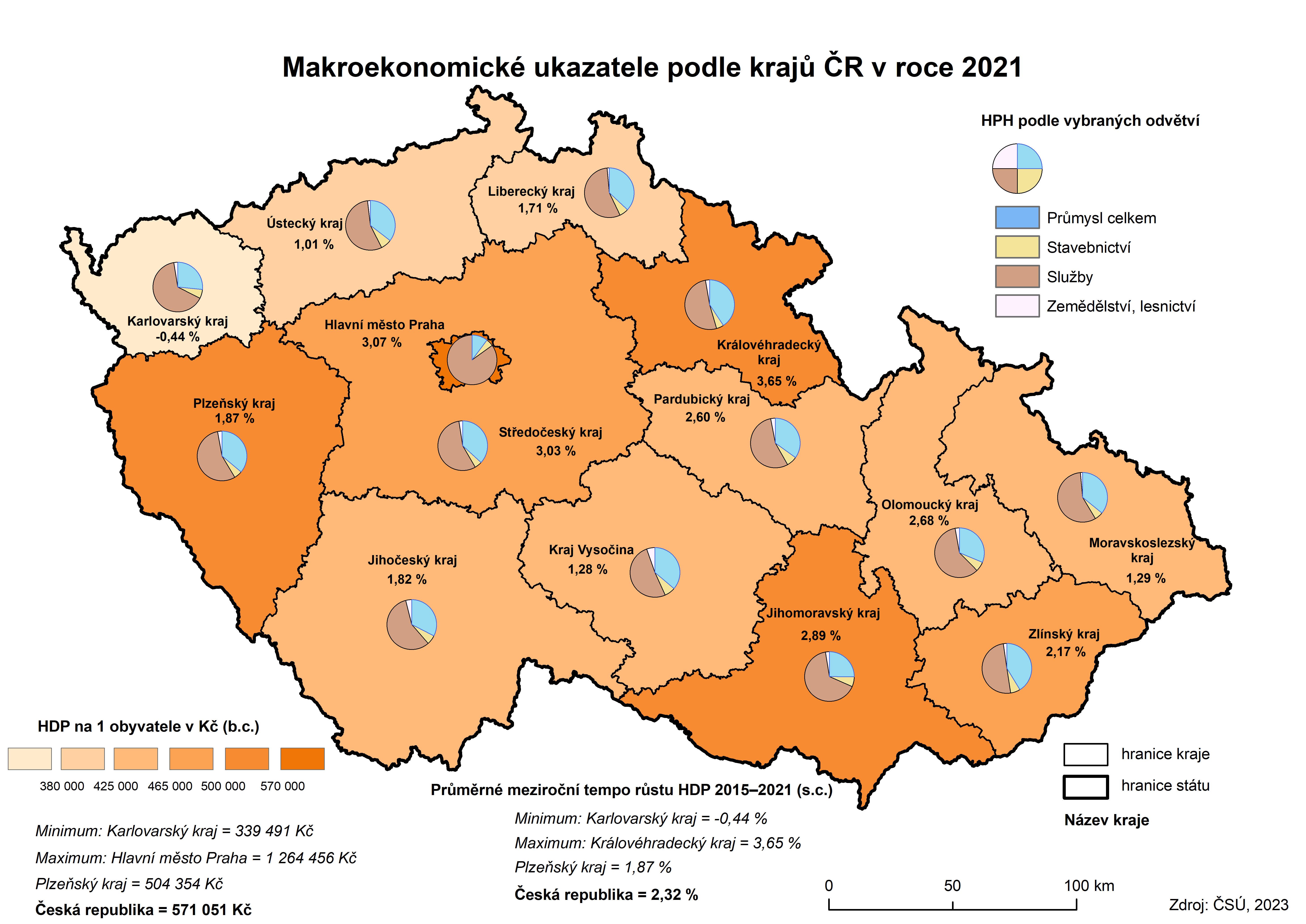 Makroekonomické ukazatele podle krajů ČR v roce 2021