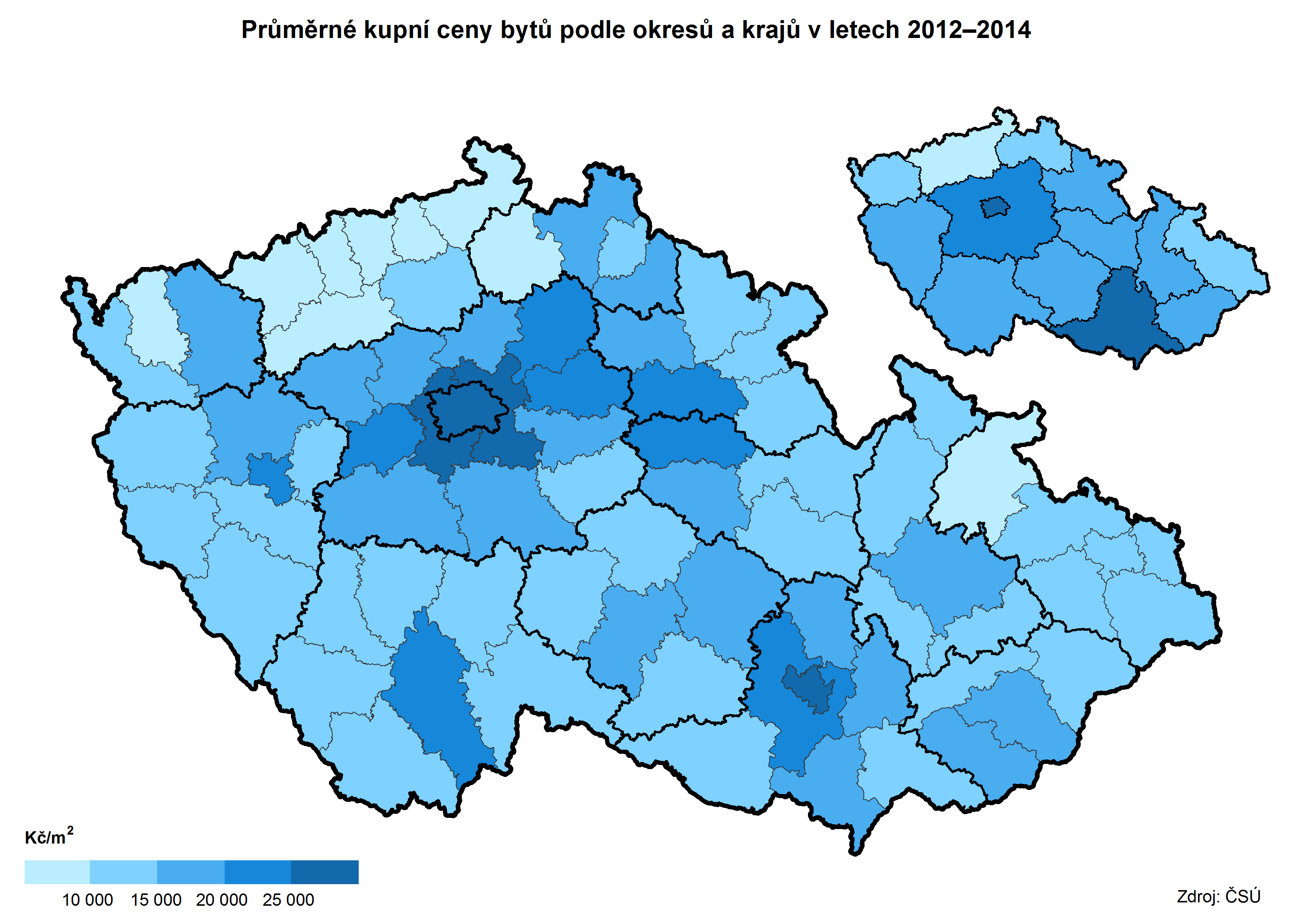 Průměrné kupní ceny bytů podle okresů a krajů v letech 2012–2014