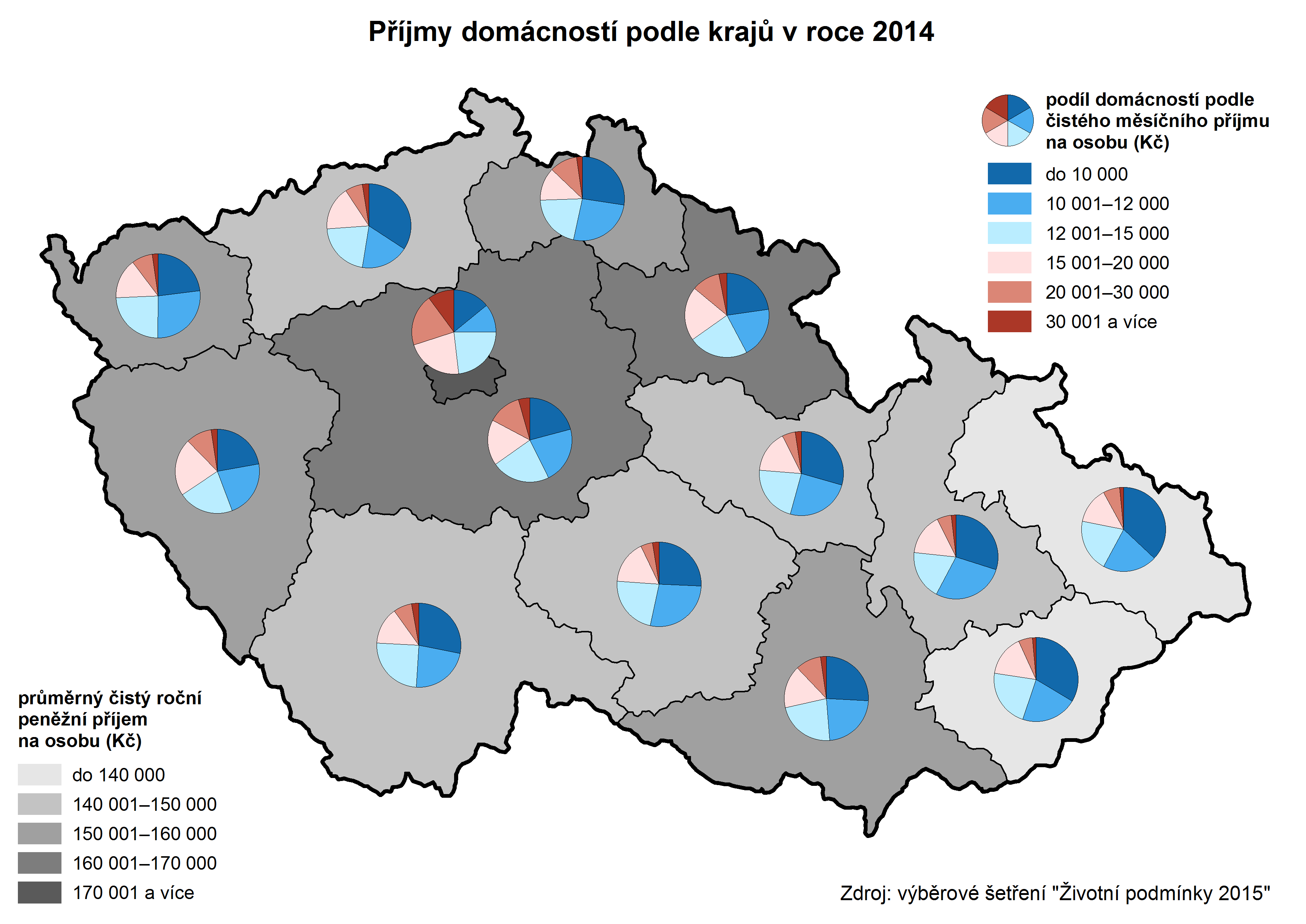 Náklady domácností na bydlení v krajích ČR v roce 2014