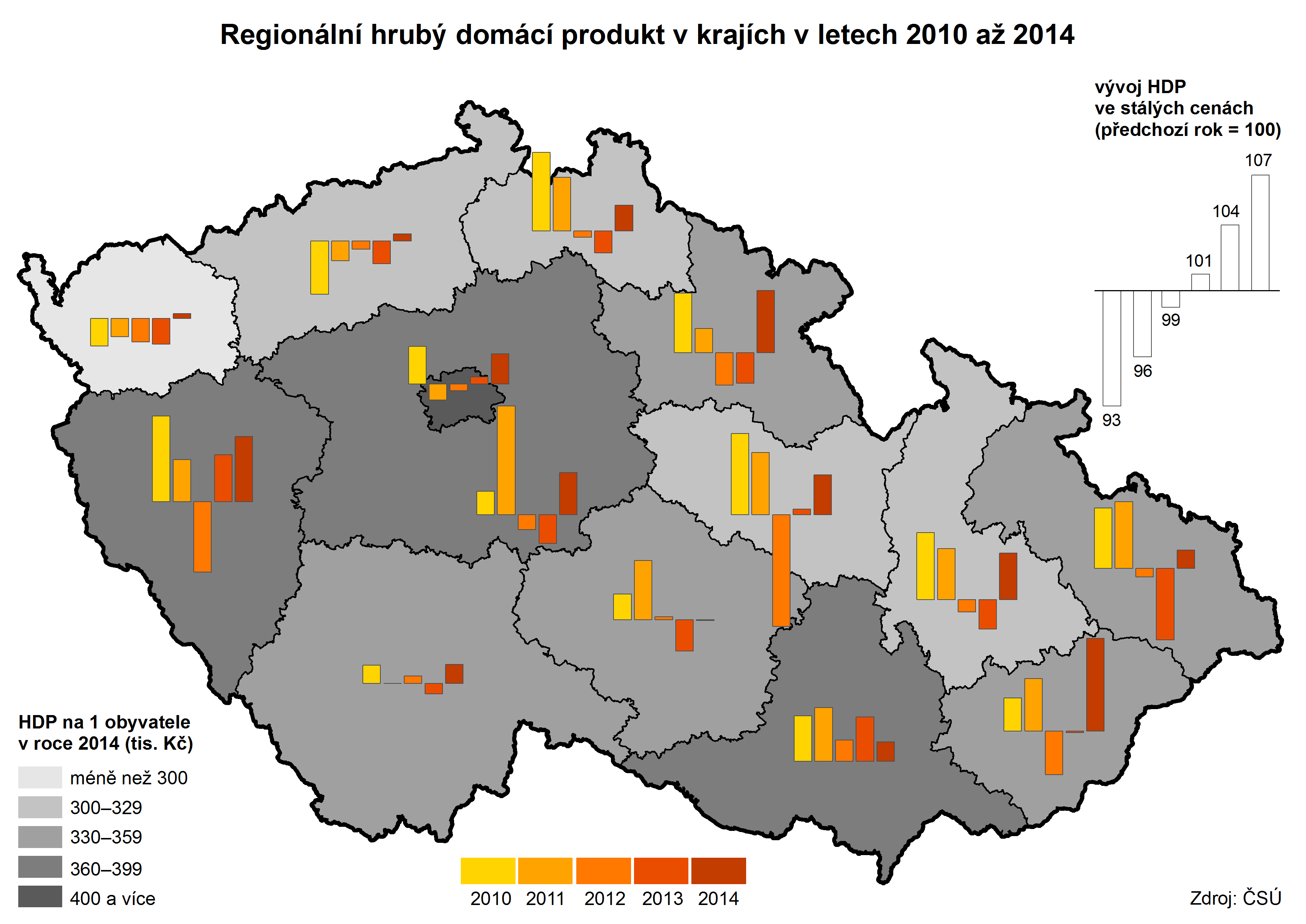 Regionální hrubý domácí produkt v krajích v letech 2010 až 2014