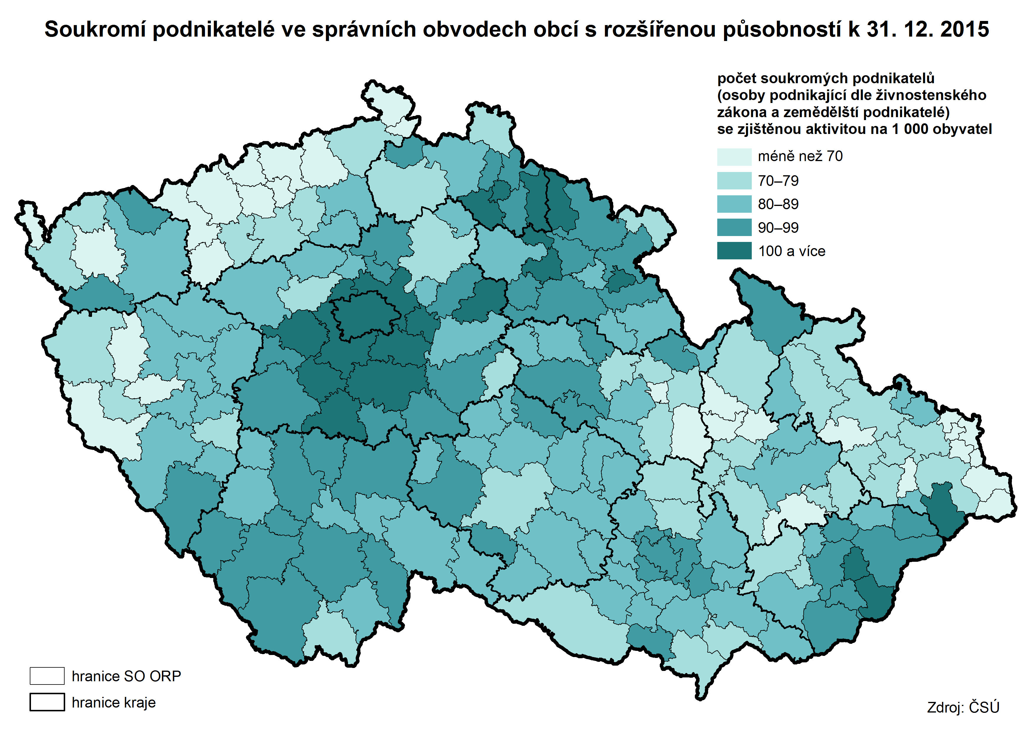 Soukromí podnikatelé ve správních obvodech obcí s rozšířenou působností k 31. 12. 2015