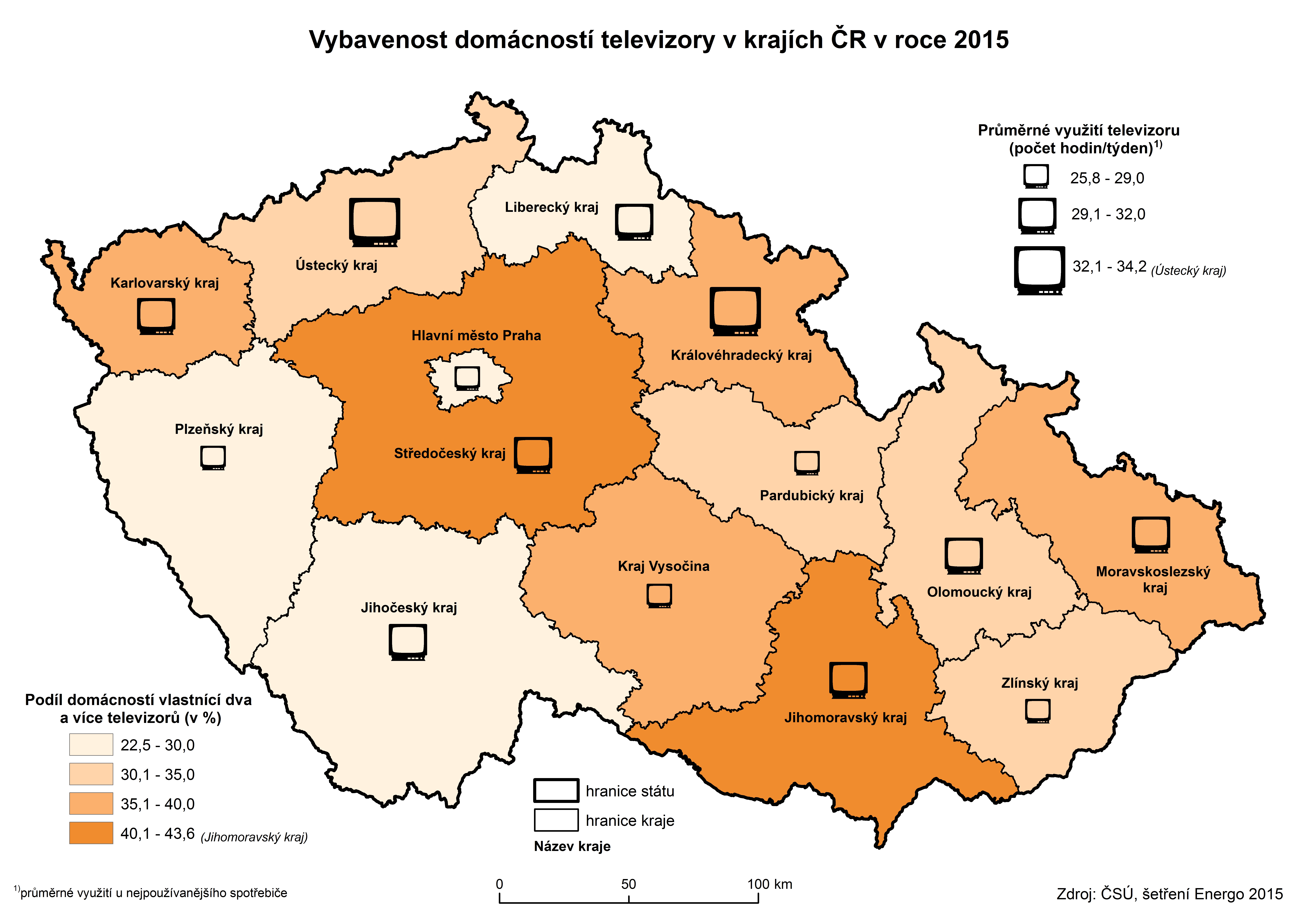 Vybavenost domácností televizory v krajích ČR v roce 2015