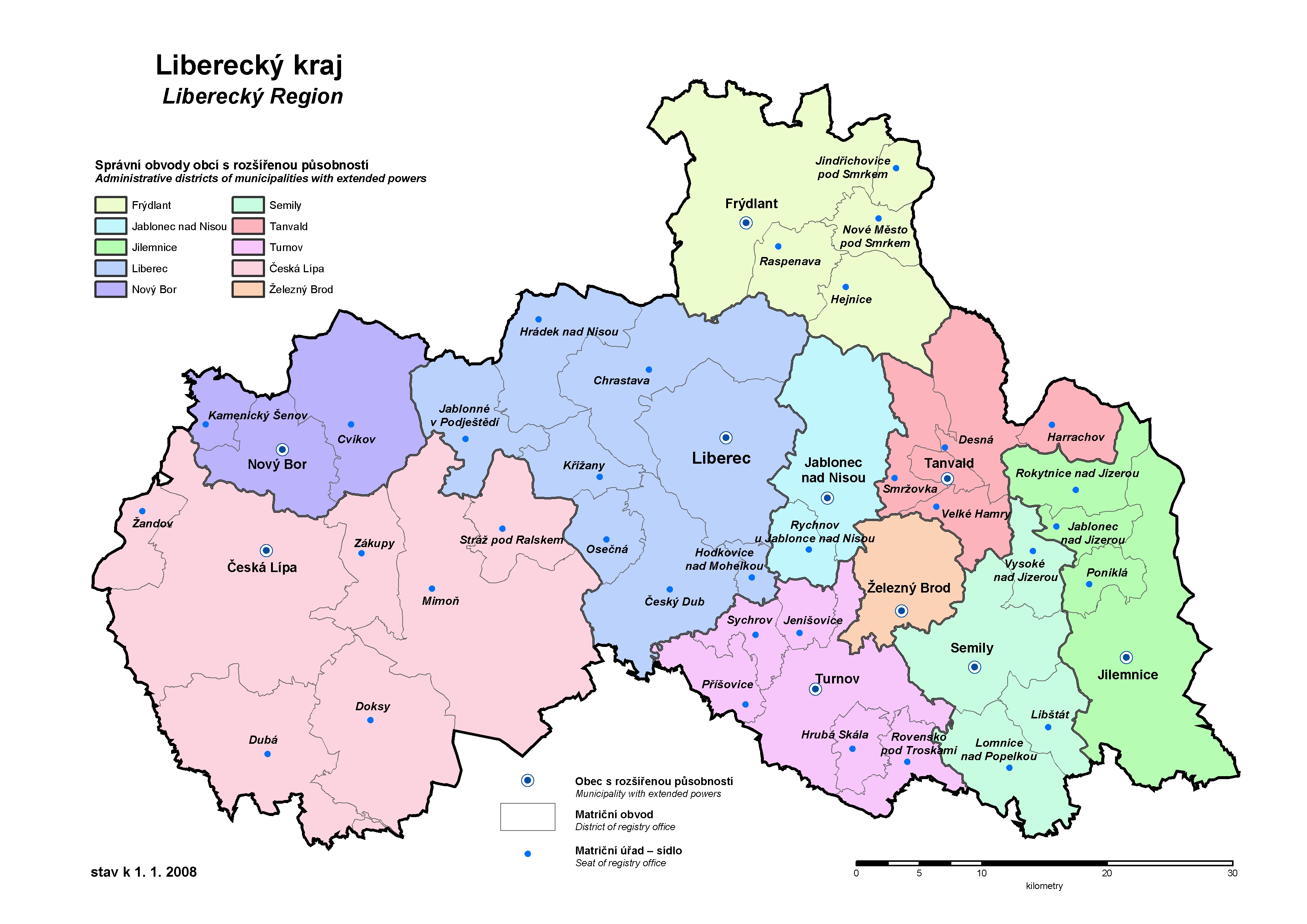 Kraje, okresy a správní obvody obcí s rozšířenou působností v ČR