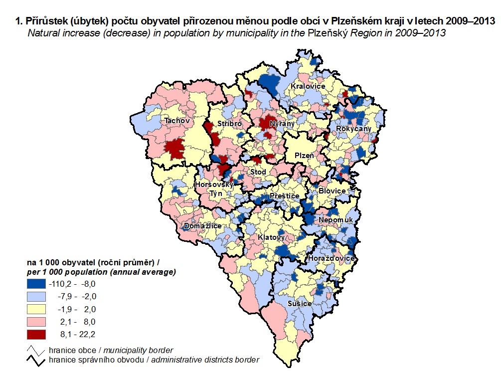 1. Natural increase (decrease) in population by municipality in the Plzeňský Region in 2009–2013