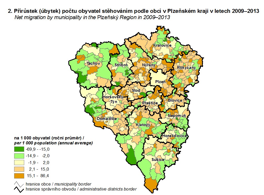 2. Net migration by municipality in the Plzeňský Region in 2009–2013