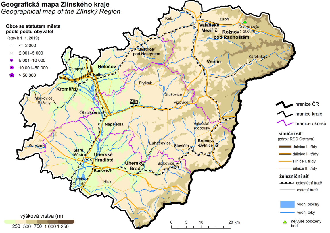 Geografická mapa Zlínského kraje
