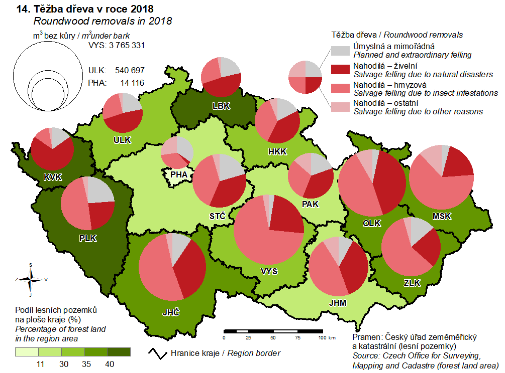 14. Těžba dřeva v roce 2018
