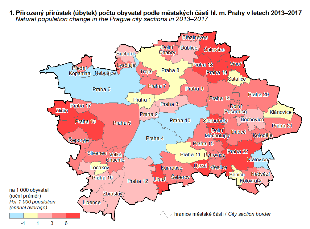 1. Přirozený přírůstek (úbytek) počtu obyvatel podle městských částí hl. m. Prahy v letech 2013–2017