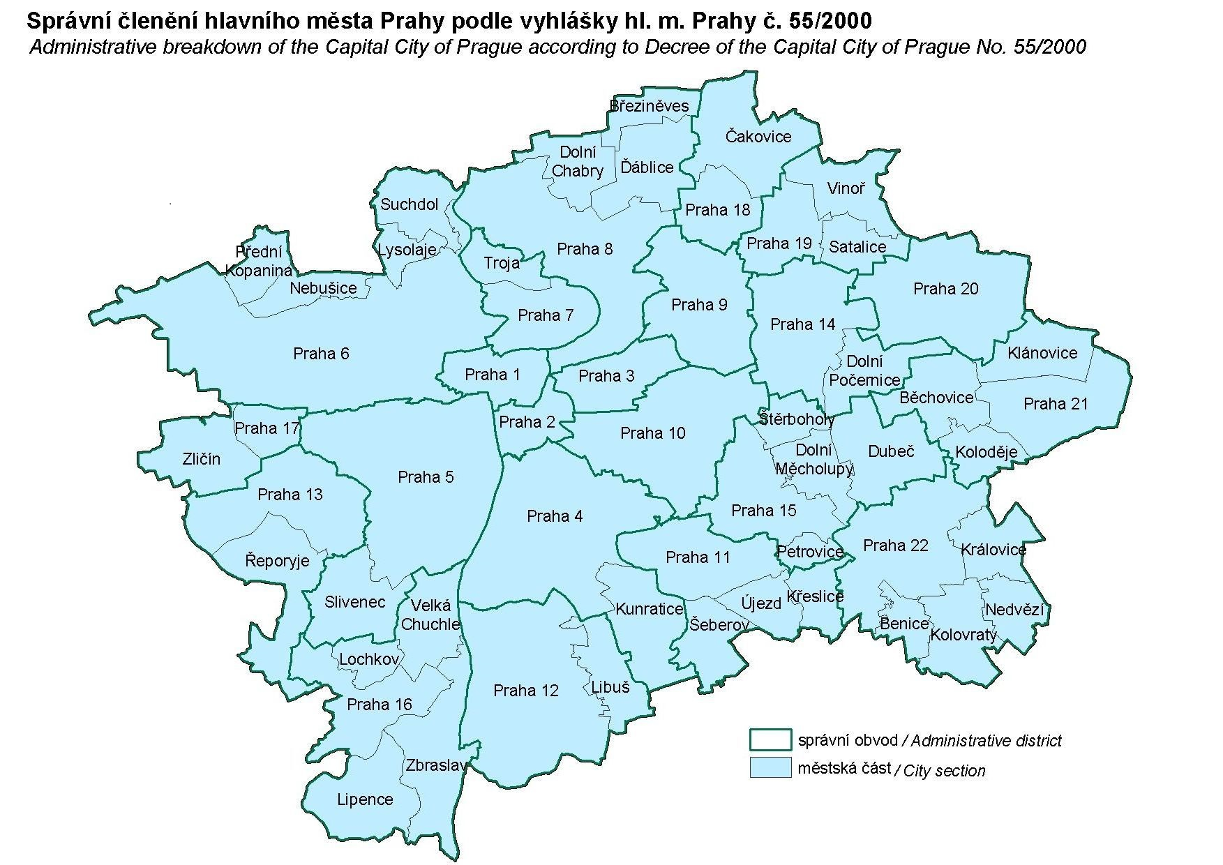 Správní členění hlavního města Prahy podle vyhlášky hl. m. Prahy č. 55/2000