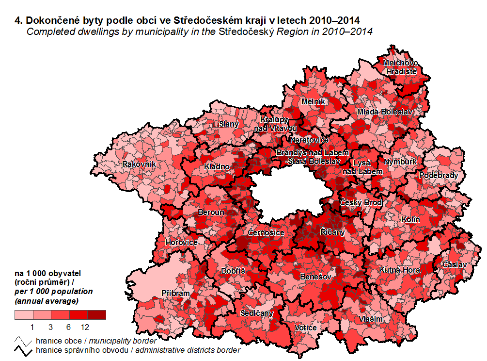 4. Dokončené byty podle obcí v Ústeckém kraji v letech 2010–2014