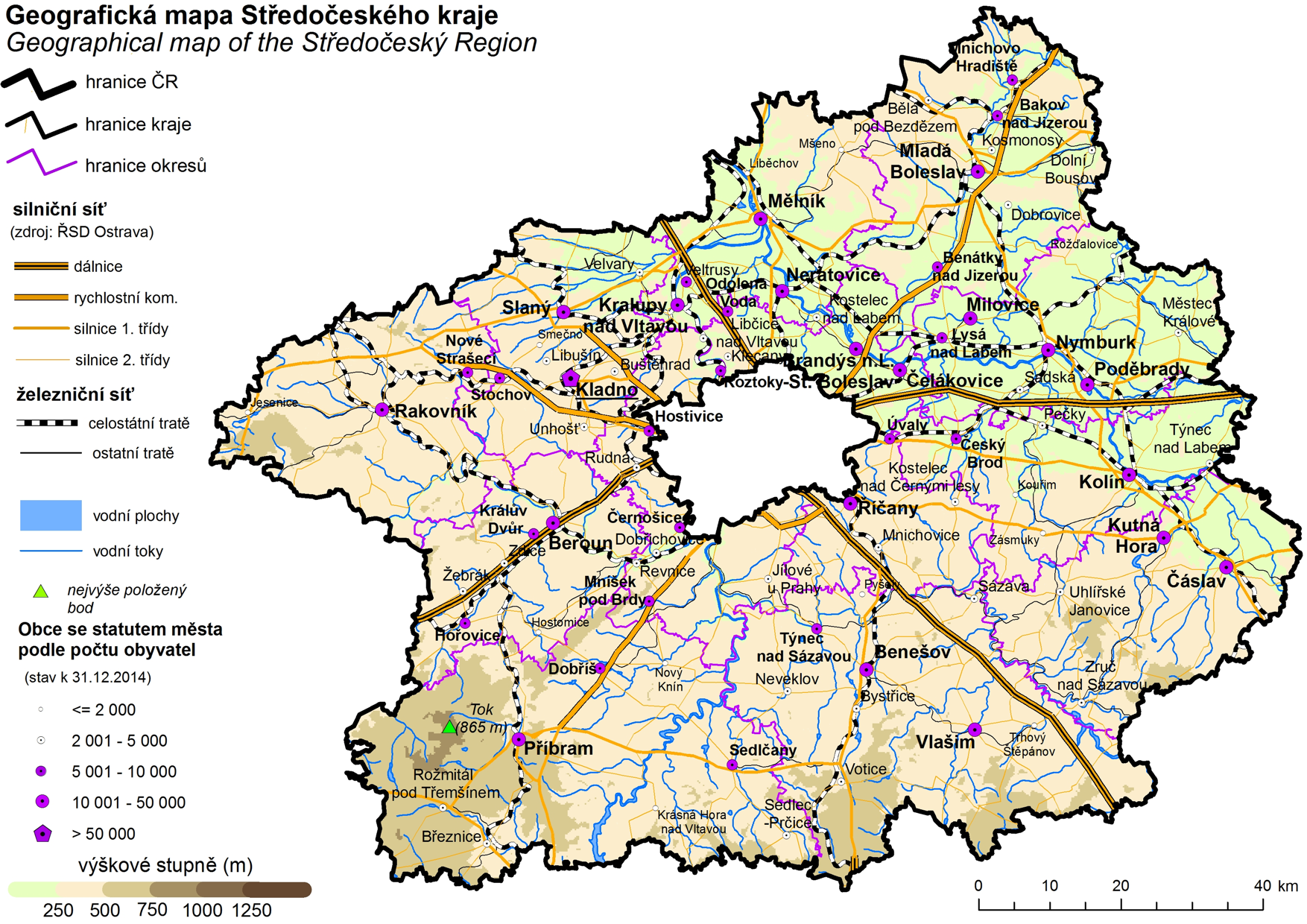 Geografická mapa Středočeského kraje