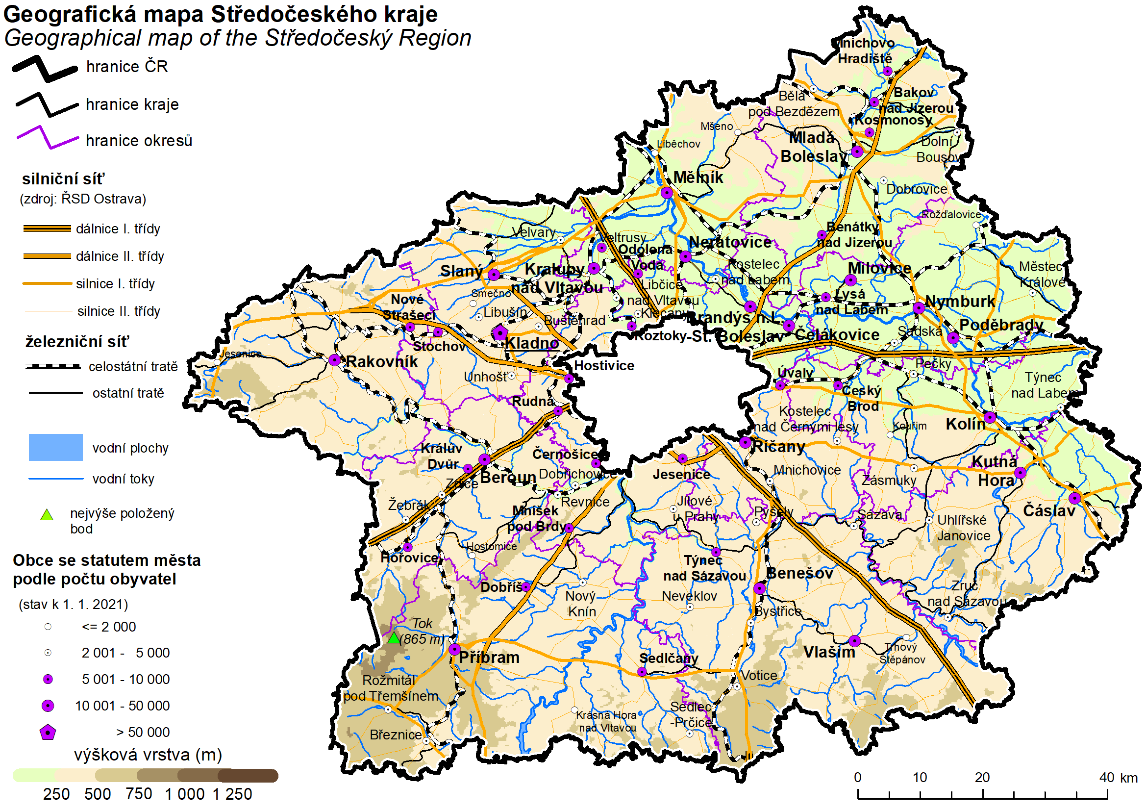 Geografická mapa Středočeského kraje