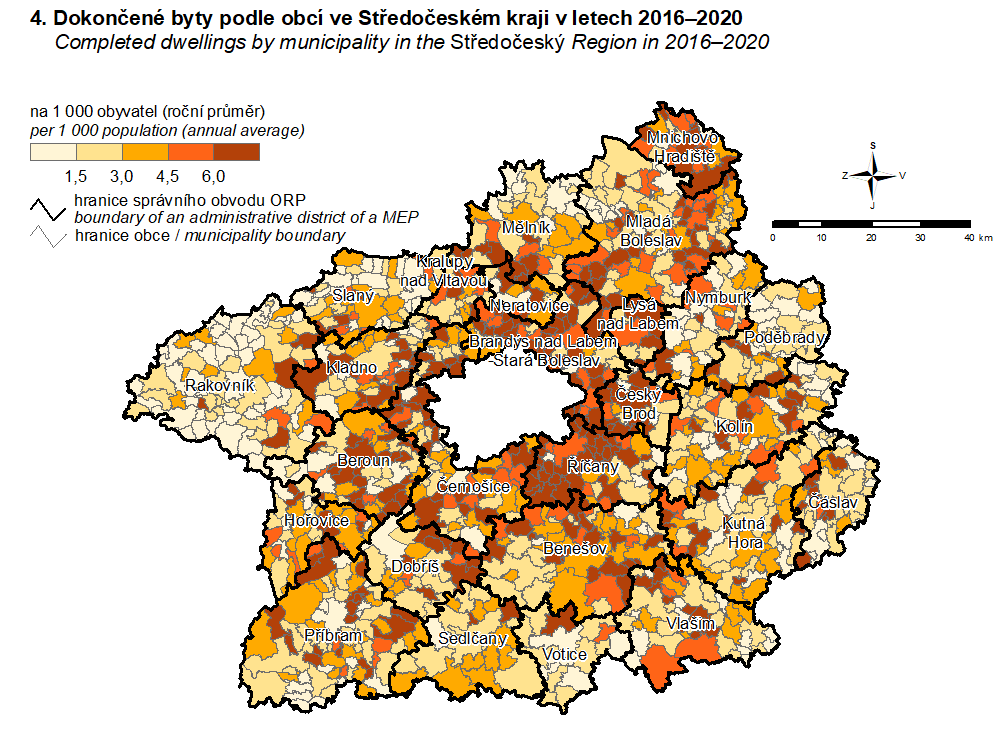 4. Dokončené byty podle obcí ve Středočeském kraji v letech 2016–2020
