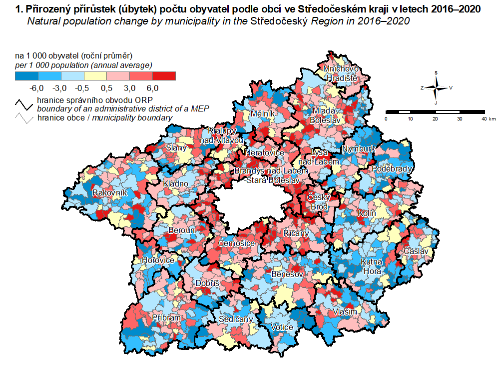 1. Přirozený přírůstek (úbytek) počtu obyvatel podle obcí ve Středočeském kraji v letech 2016–2020