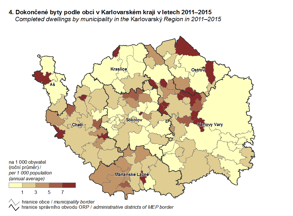 4. Dokončené byty podle obcí v Karlovarském kraji v letech 2011–2015