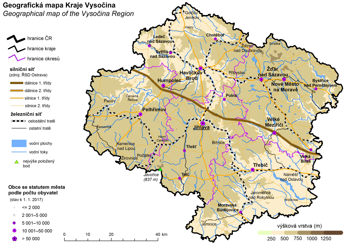Geografická mapa Kraje Vysočina