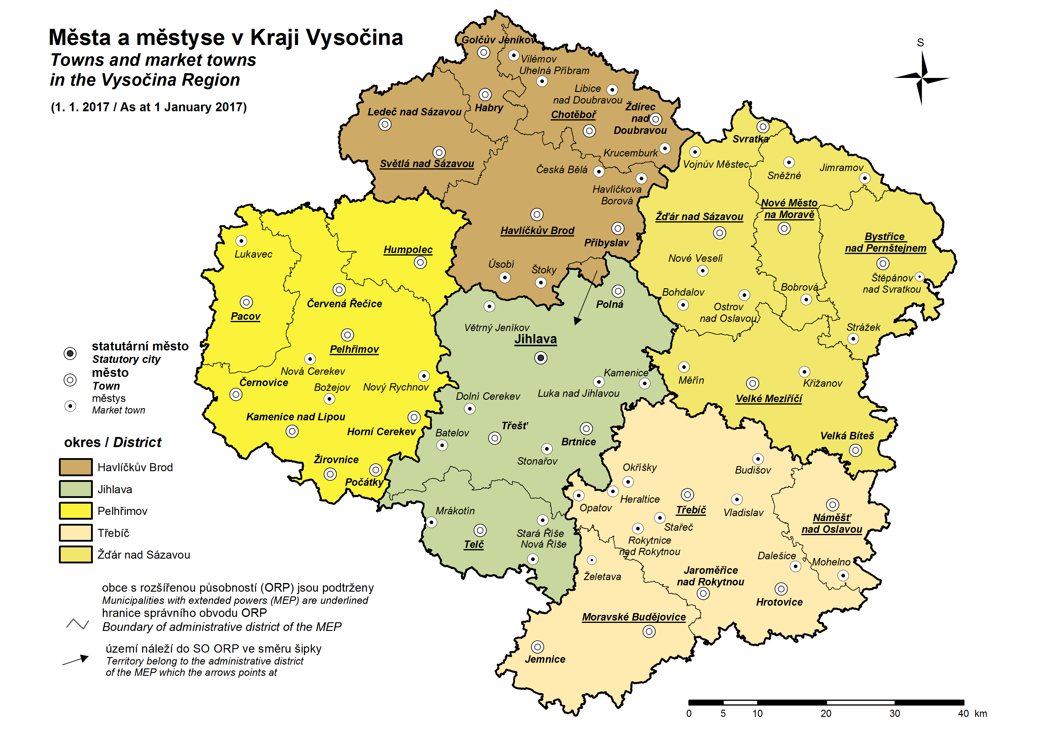 Města a městyse v Kraji Vysočina