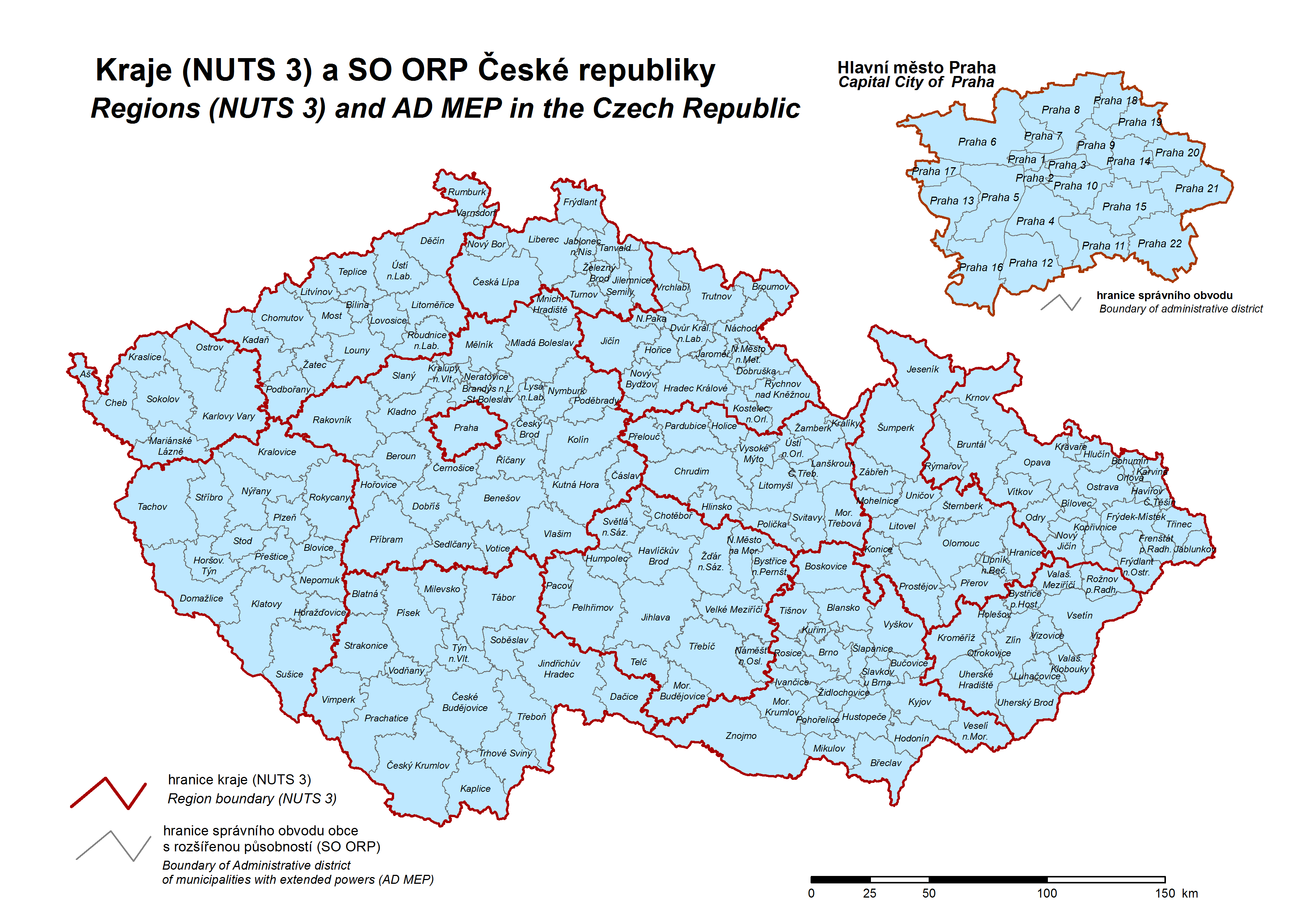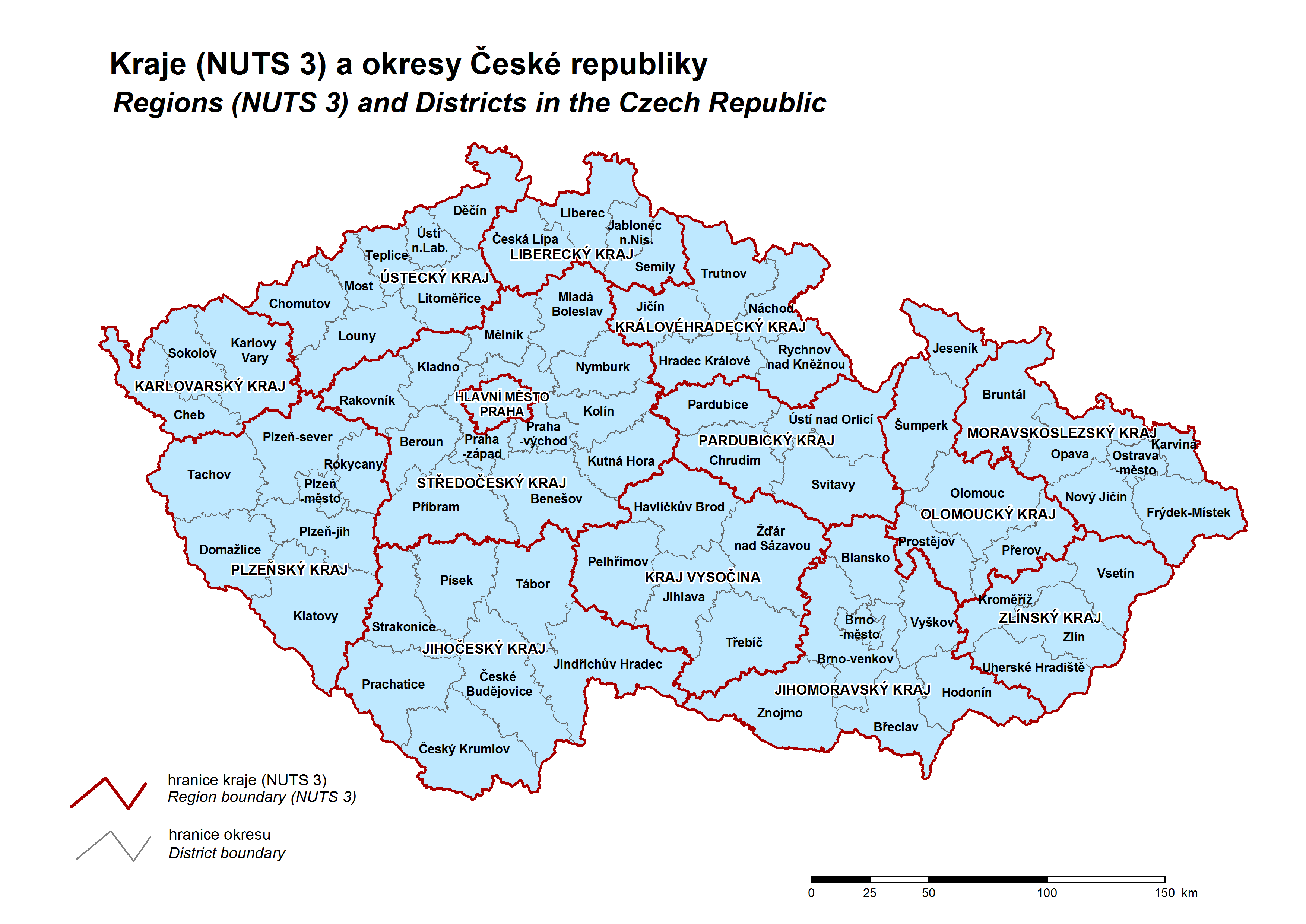 Regiony soudržnosti (NUTS 2) a kraje (NUTS 3) České republiky