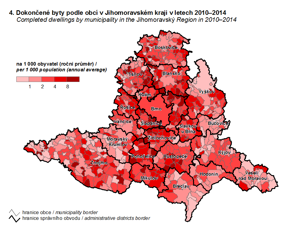 4. Dokončené byty podle obcí v Jihomoravském kraji v letech 2010–2014