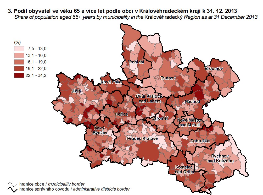 3. Podíl obyvatel ve věku 65 a více let podle obcí v Královéhradeckém kraji k 31. 12. 2013