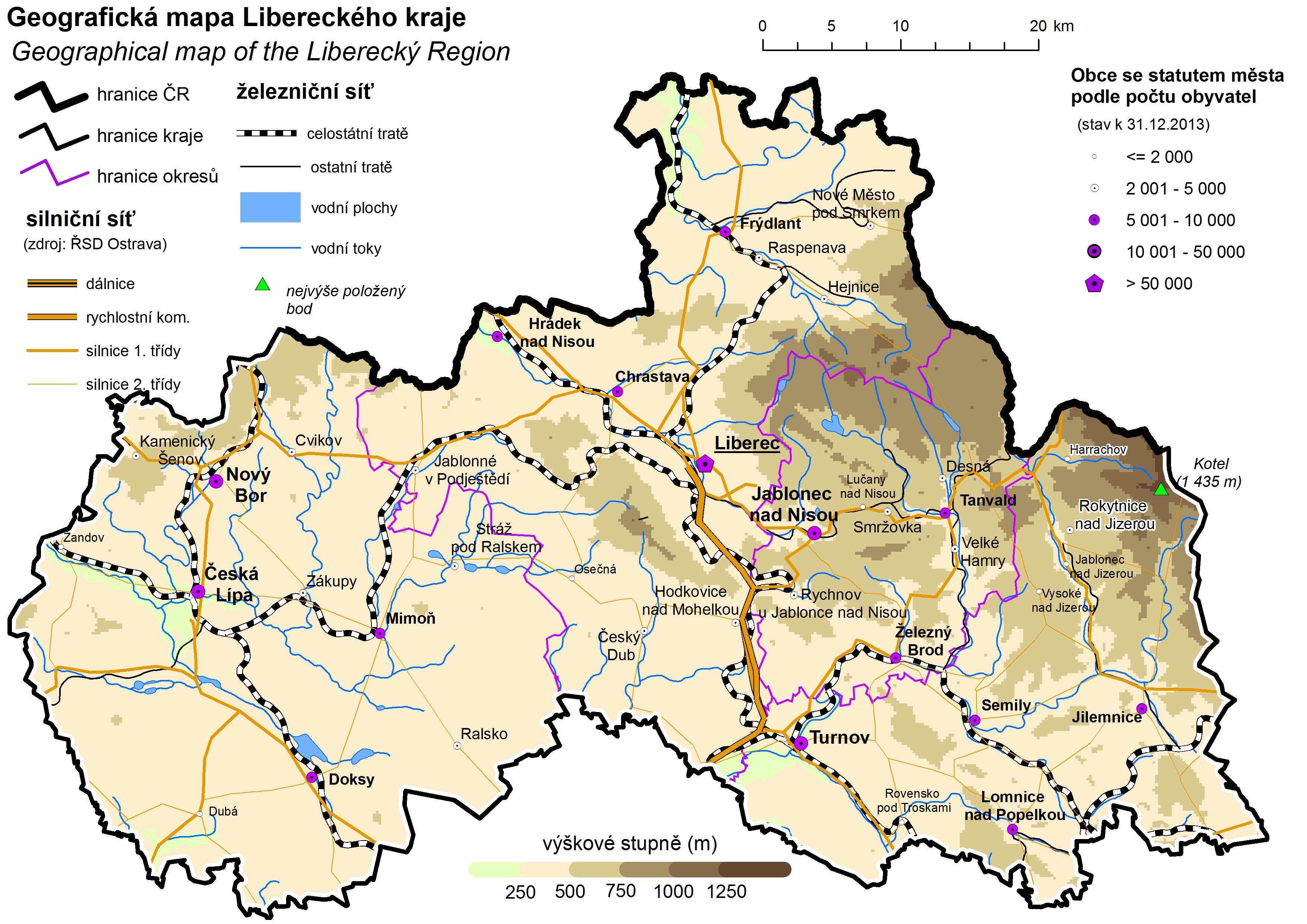 Geografická mapa Libereckého kraje