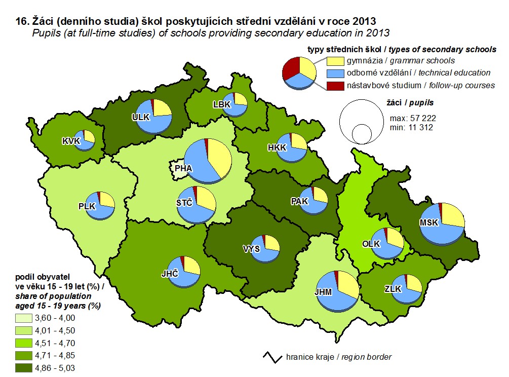 16. Žáci (denního studia) škol poskytujících střední vzdělání v roce 2013