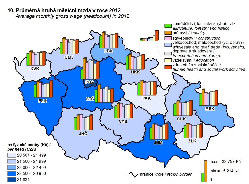 10. Průměrná hrubá měsíční mzda v roce 2012