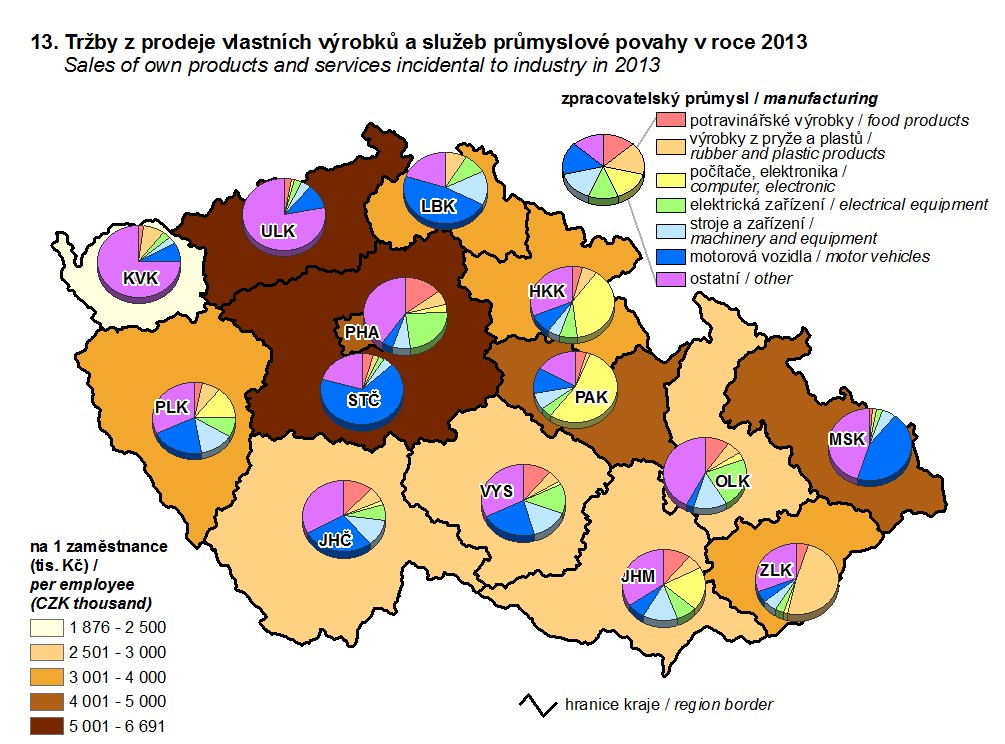13. Tržby z prodeje vlastních výrobků a služeb průmyslové povahy v roce 2013