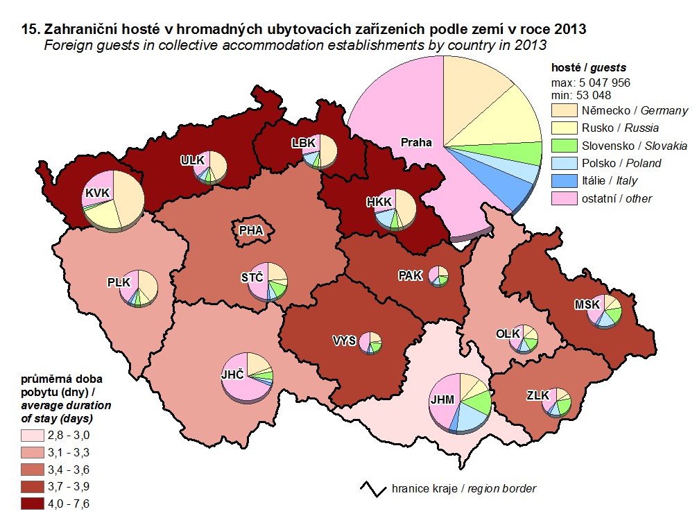 15. Zahraniční hosté v hromadných ubytovacích zařízeních podle zemí v roce 2013