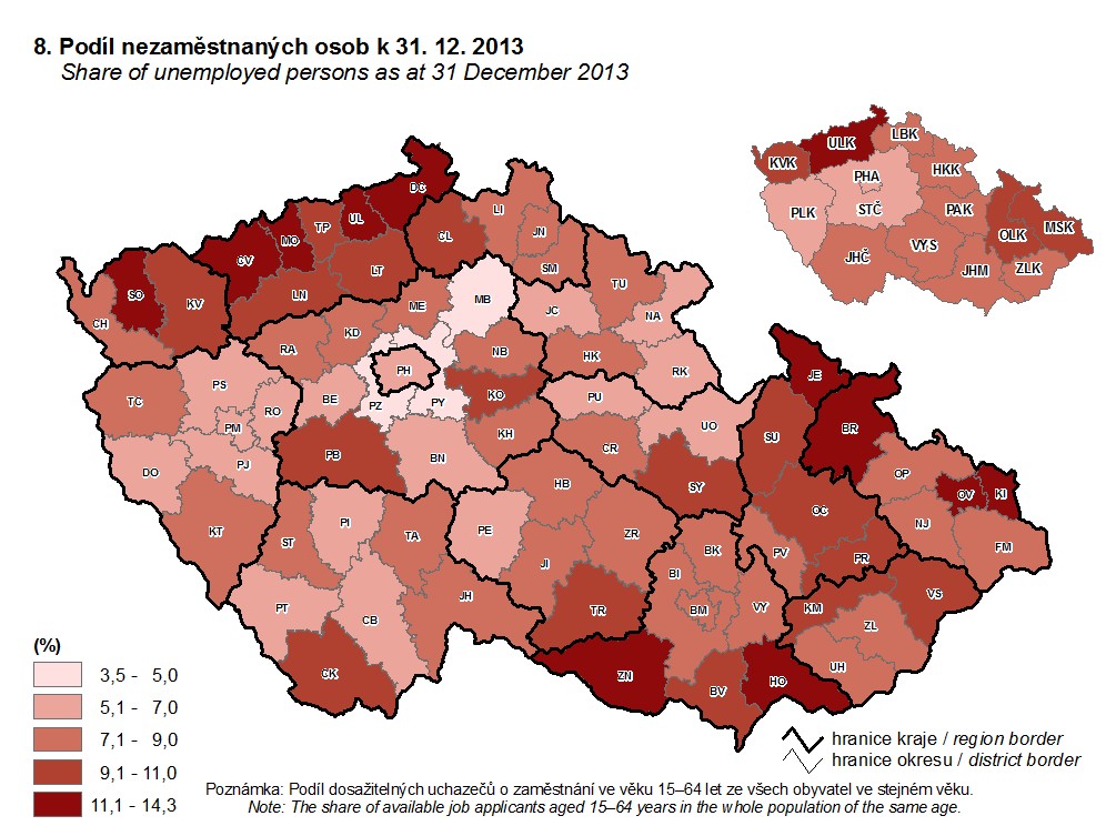 8. Podíl nezaměstnaných osob k 31. 12. 2013