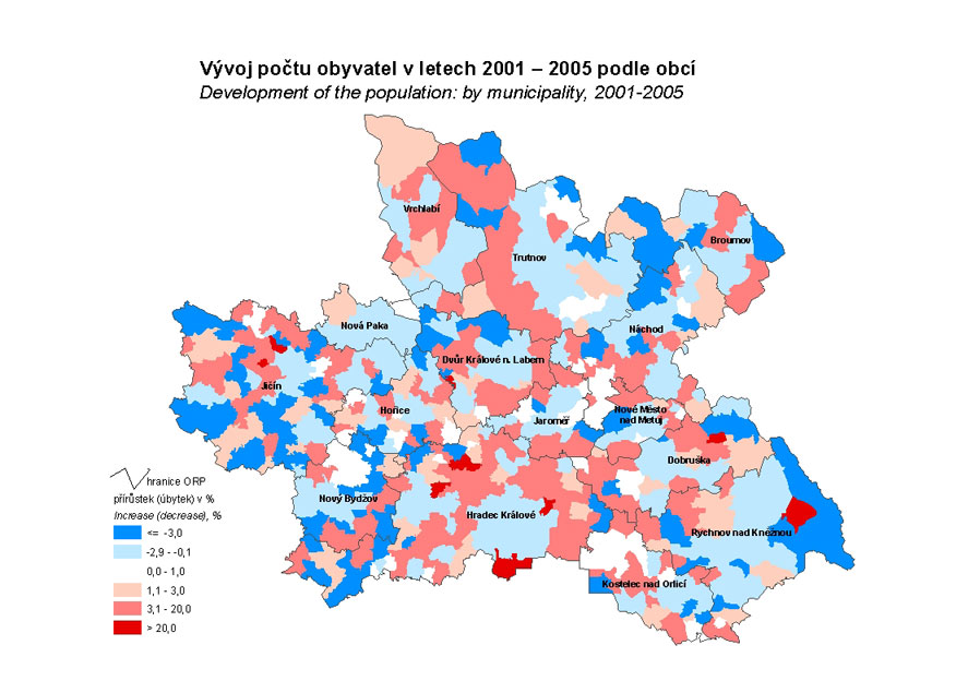 (okresy, správní obvody obcí s rozšířenou působností, velikostní skupiny obcí, města)