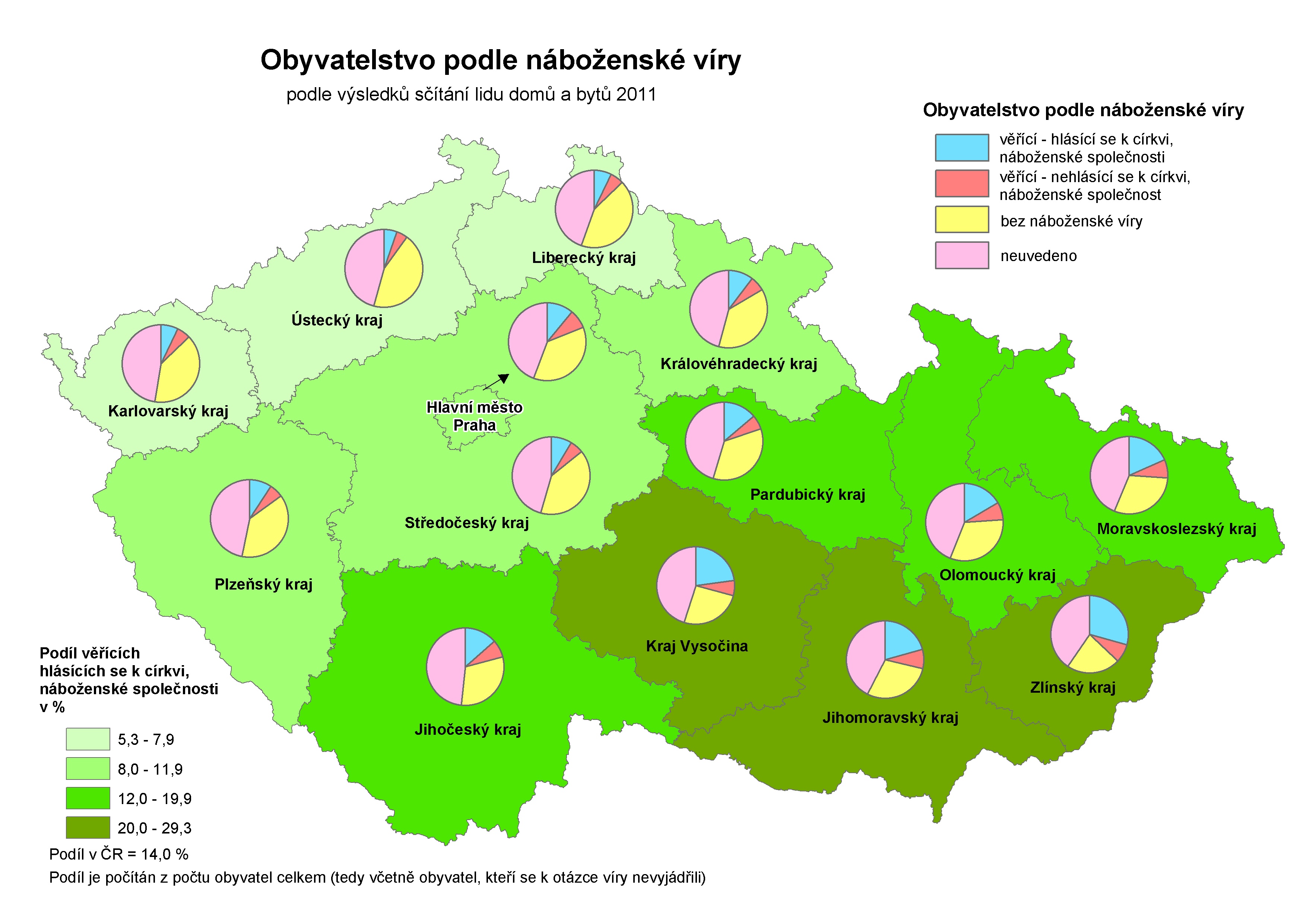Obyvatelstvo podle Sčítání lidu, domů a bytů - Česká republika a kraje - 2011