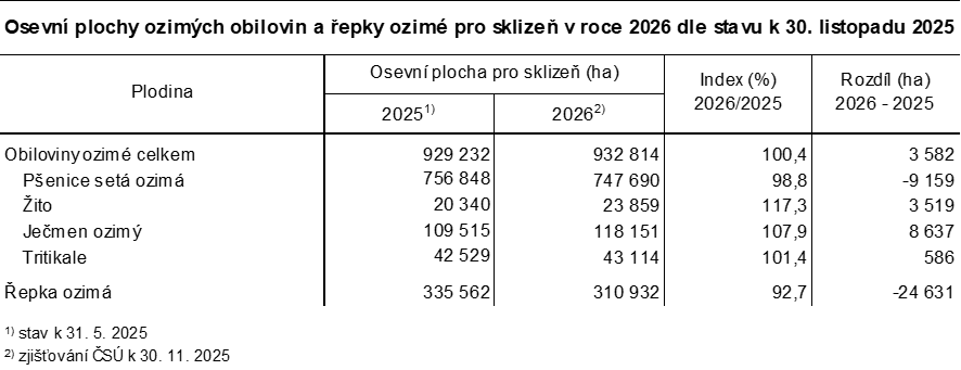 Osevní plochy ozimých plodin pro sklizeň v roce 2026