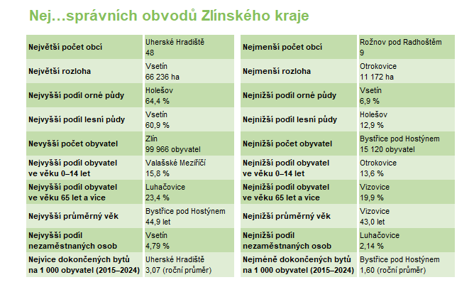 Správní obvody obcí s rozšířenou působností Zlínského kraje - 2024