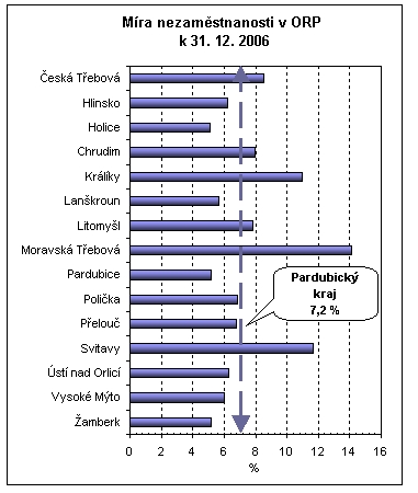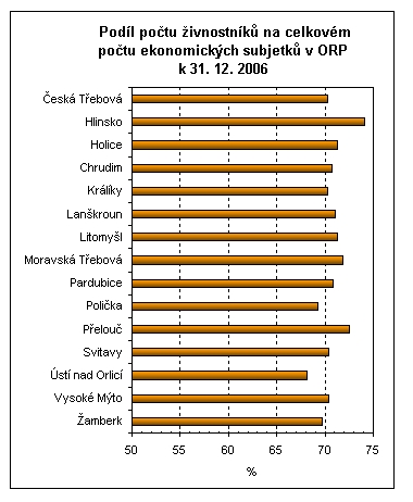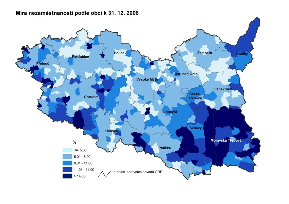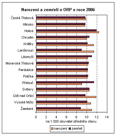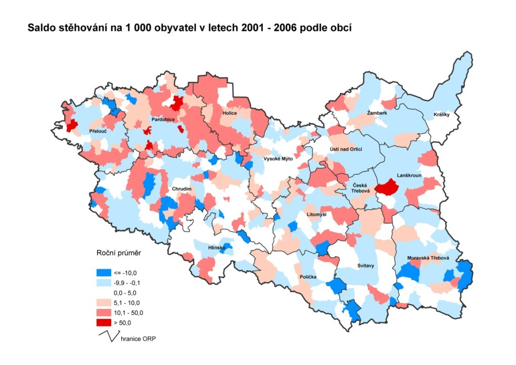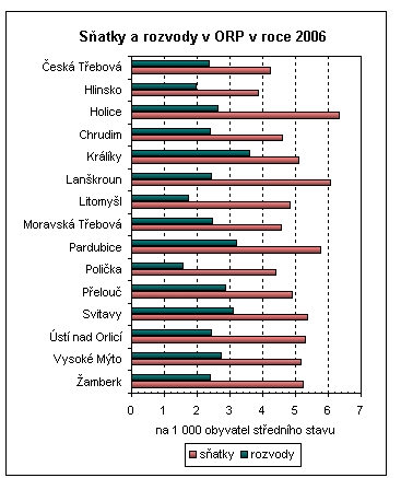Vybrané údaje za obce Pardubického kraje podle správních obvodů - 2006