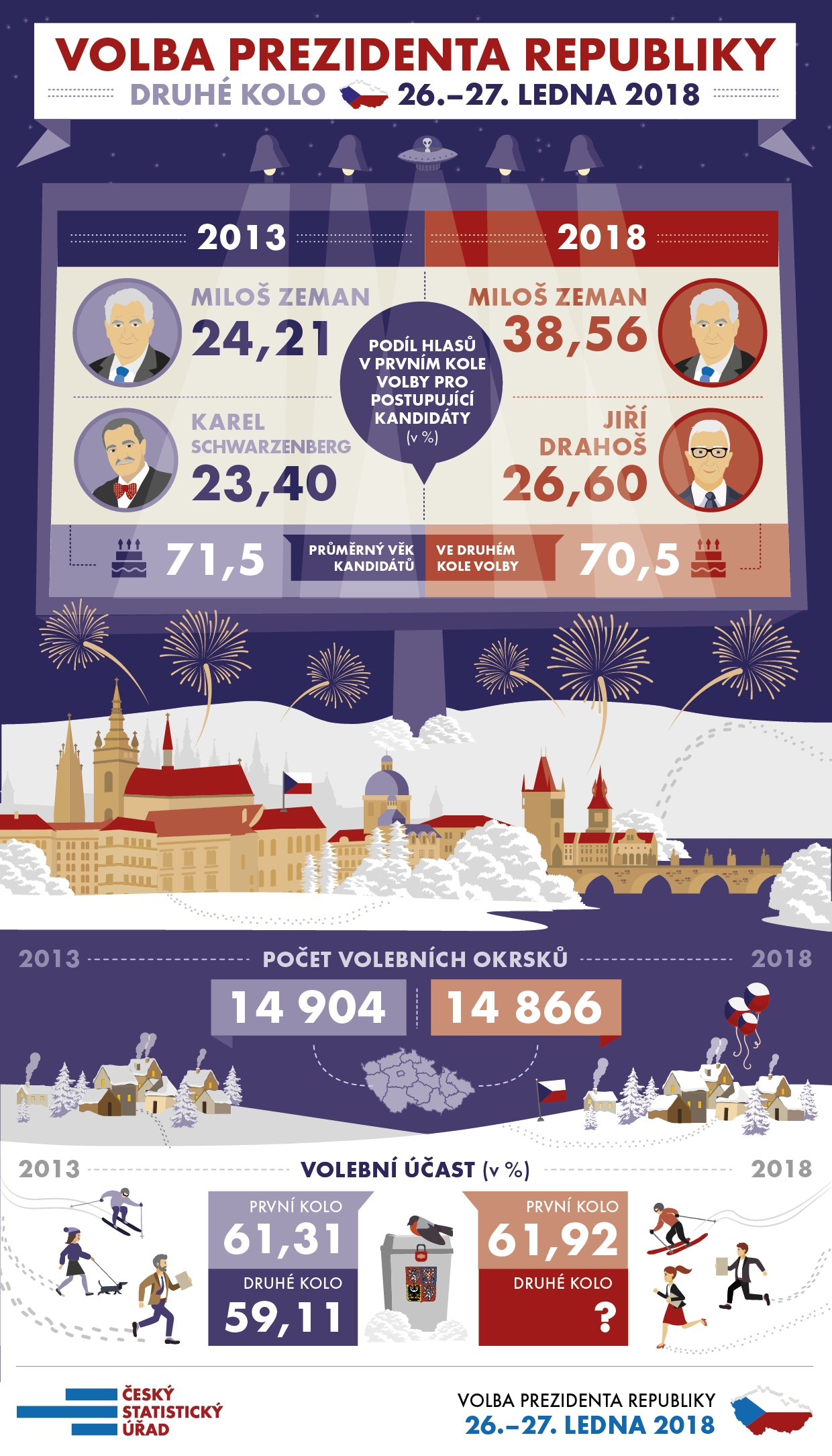 Výsledky volby prezidenta bude ČSÚ přinášet průběžně