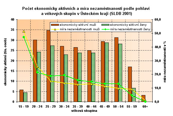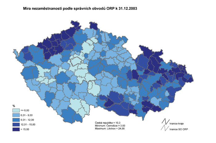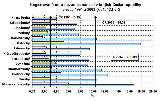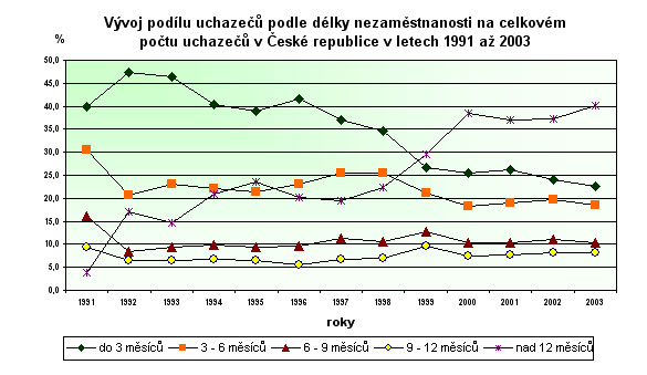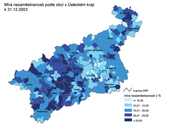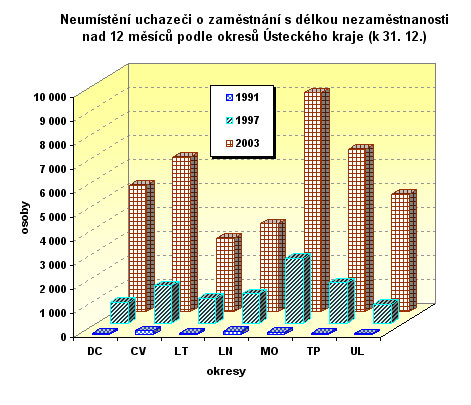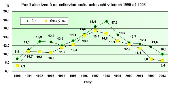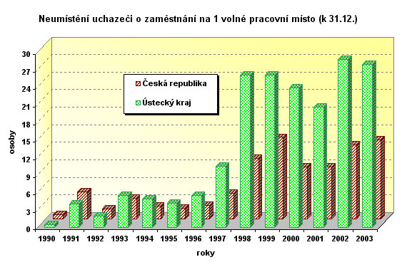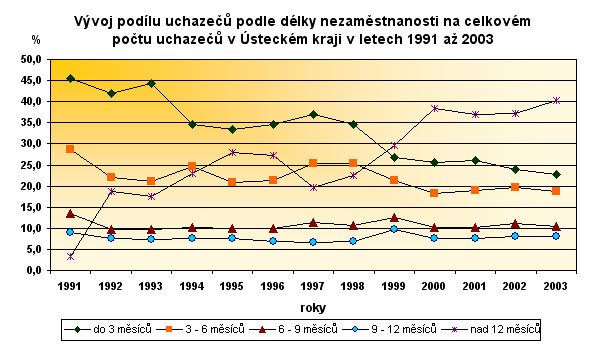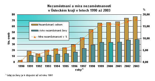 Vývoj nezaměstnanosti v Ústeckém kraji - 1990 - 2003