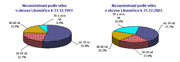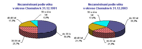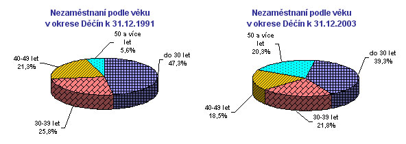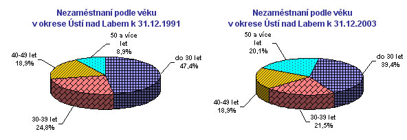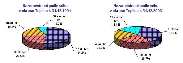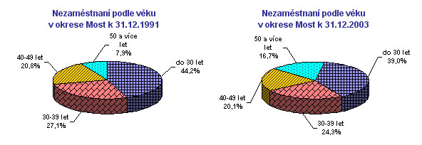 Nezaměstnaní podle věku k 31.12.1991 a k 31.12. 2003