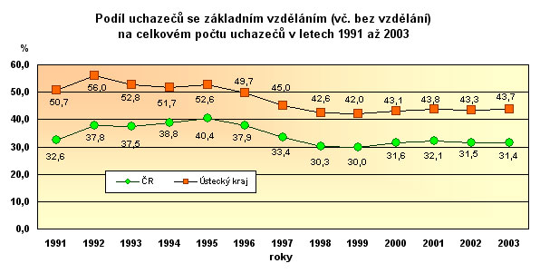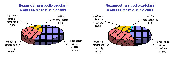 Nezaměstnaní podle vzdělání k 31.12.1991 a k 31.12. 2003
