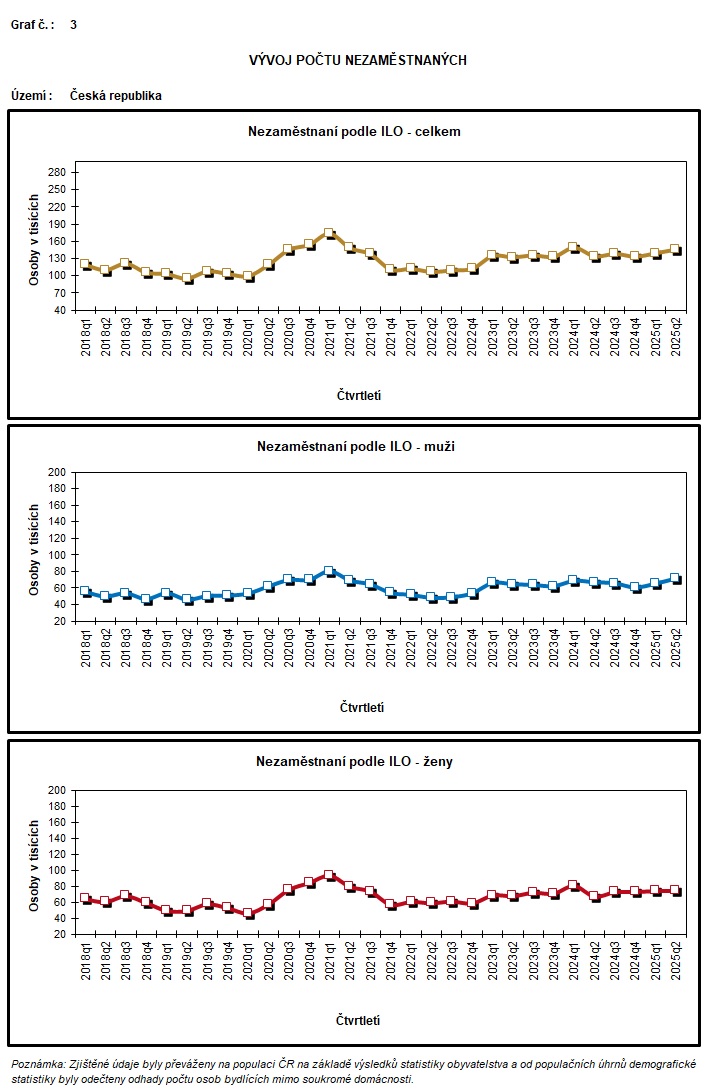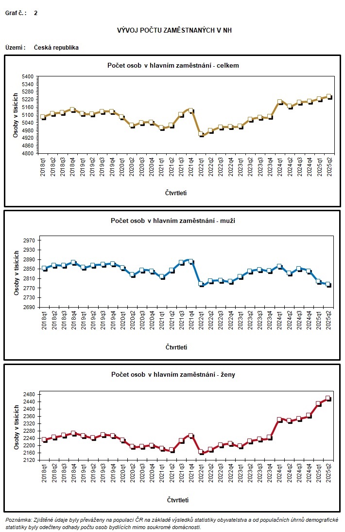 Zaměstnanost a nezaměstnanost podle výsledků VŠPS - čtvrtletní údaje - 2. čtvrtletí 2025