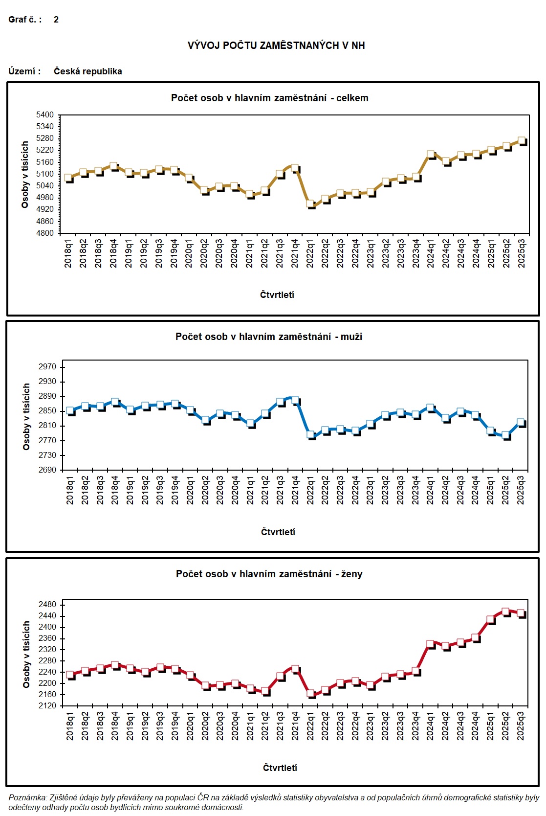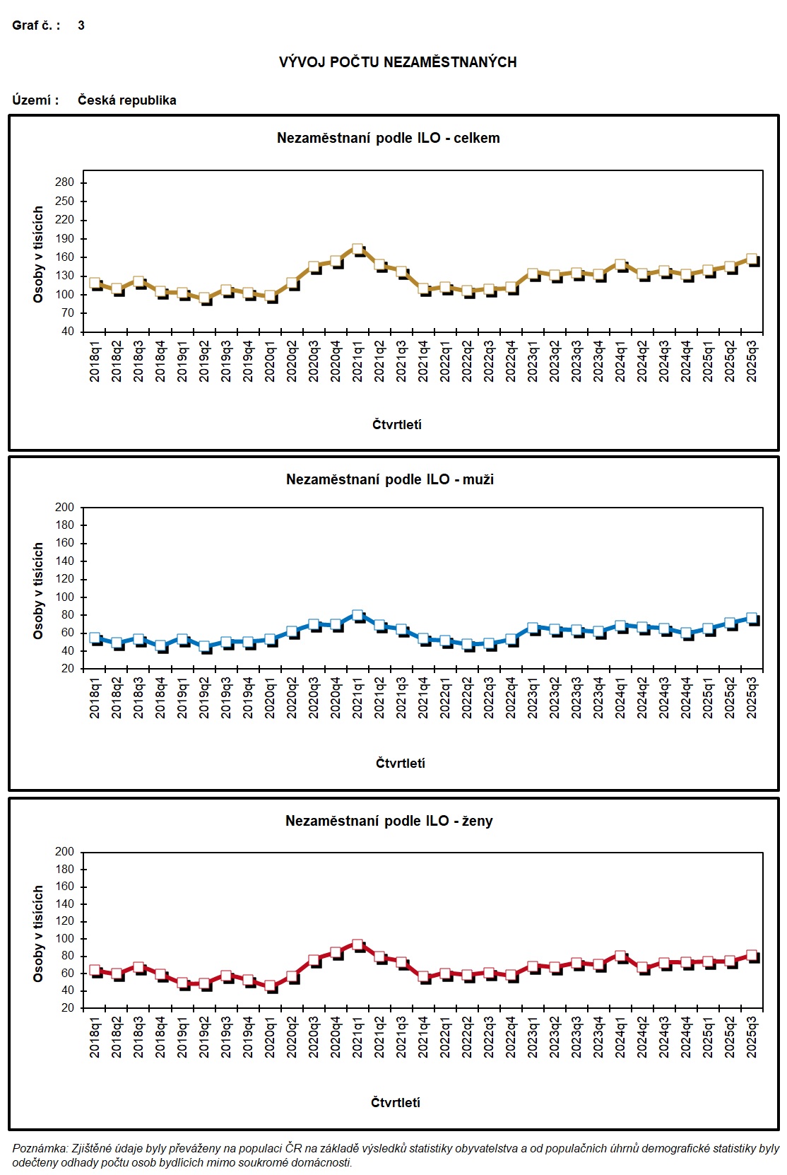 Zaměstnanost a nezaměstnanost podle výsledků VŠPS - čtvrtletní údaje - 3. čtvrtletí 2025